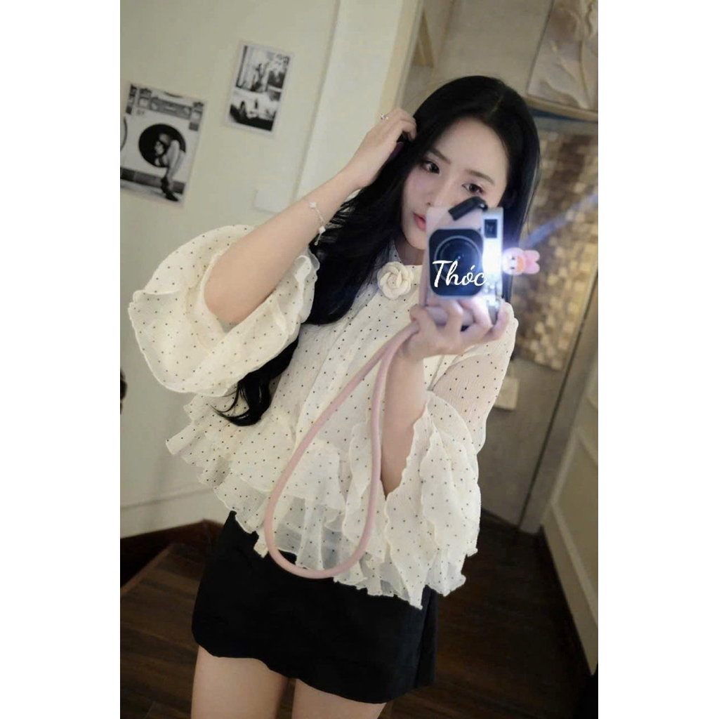 เสื้อเชิ้ตเลดี้แขนบานสวยสุดๆดอกคามิเลีย ง44