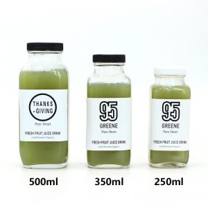 ขวดแก้วสี่เหลี่ยมทรงสูงปากกว้างและฝาพลาสติก 250มล, 350มล, 500มล / สําหรับน้ําผลไม้, นมถั่ว, ดีท็อกซ์, โยเกิร์ต, คอมมูชา
