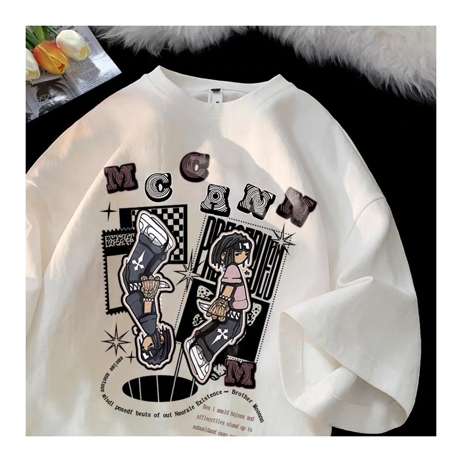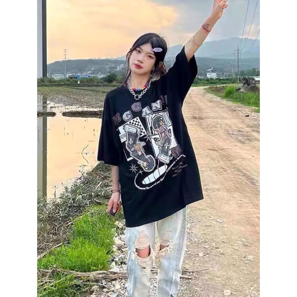 🚚(Cotton 100%) Luvoro เสื้อยืดชาย ผู้หญิง เสื้อยืดแขนสั้นแนวสตรีทย้อนยุคสไตล์ยุโรปและอเมริกา เสื้อโอเวอร์ไซส์แขนสั้นทรงหลวม C1632