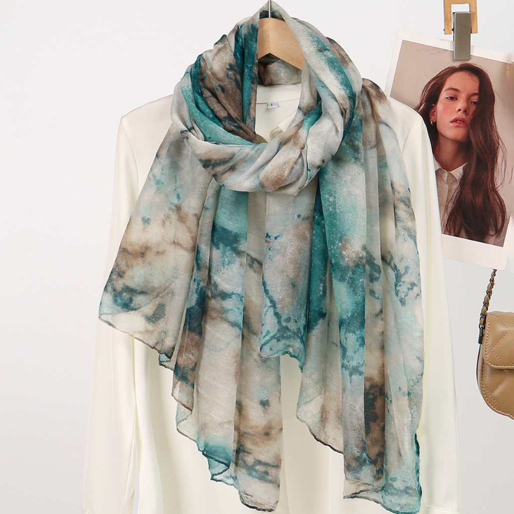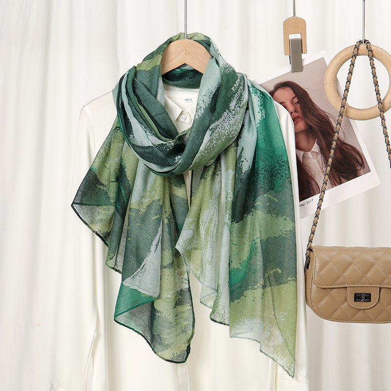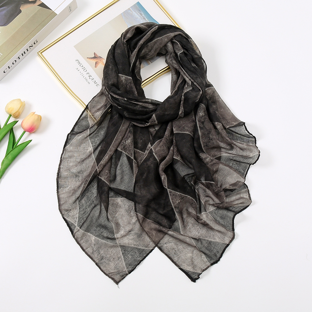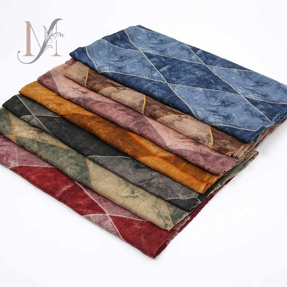 LMLAVEN Rhomboid Tudung พิมพ์ผ้าพันคอฮิญาบผ้าฝ้าย Voile ฮิญาบผ้าคลุมไหล่ Gradient ลาย้เหนียวมุสลิมฮิญาบ Headscarf