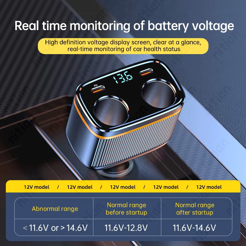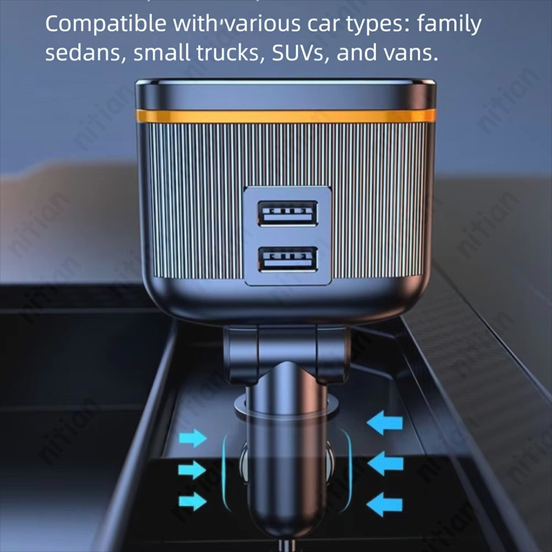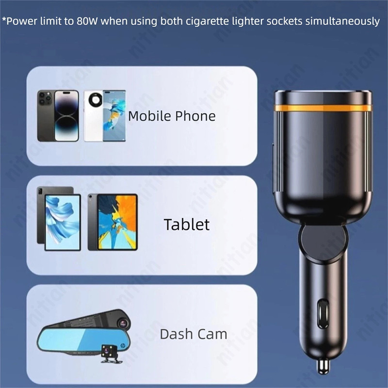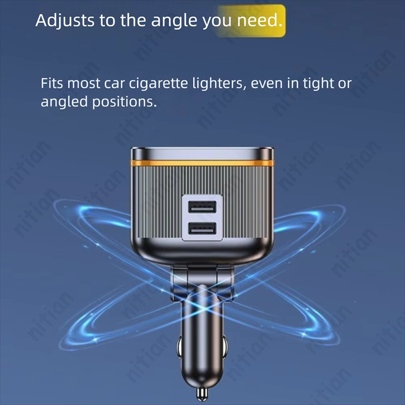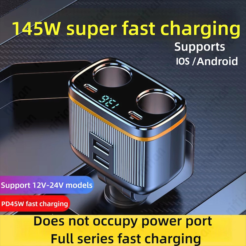 145W ที่ชาร์จแบตในรถ 6 in 1 2USB + 2 ประเภท C 4 พอร์ตอะแดปเตอร์ชาร์จในรถยนต์ PD45W ปรับมุม Fast Charging พร้อมแรงดันไฟฟ้าจอแสดงผล 12 V-24 V อะแดปเตอร์ชาร์จโทรศัพท์