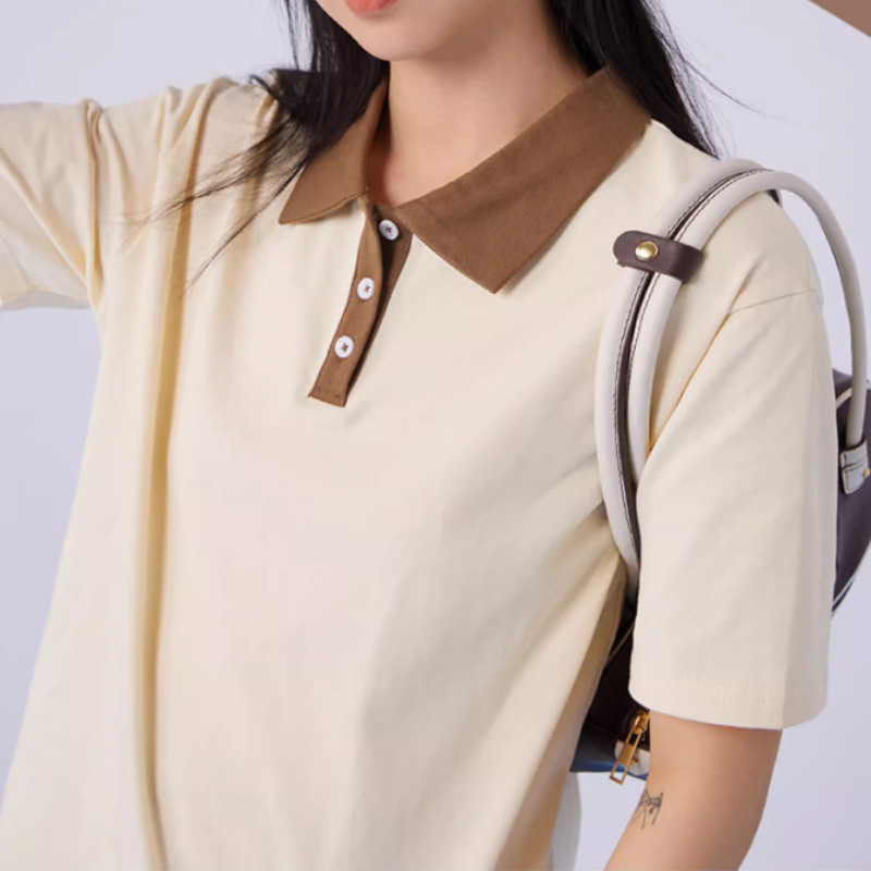 GENIO LAMODE⭐️ เสื้อโปโลคอปกสตรี สีคอนทราสต์ งานตัดเย็บดี ผ้านุ่มหายใจได้ ใส่ไปเที่ยว/ไปเรียน S-2XL