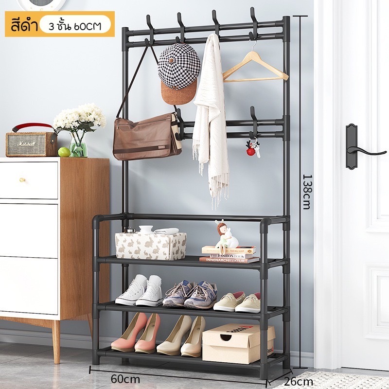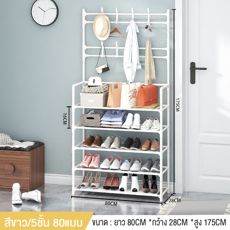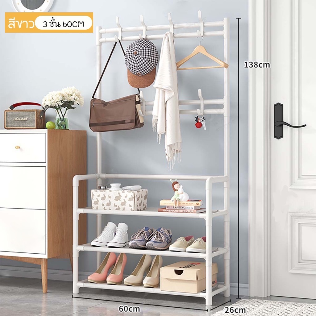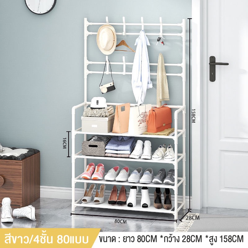 AD159_SHOP ชั้นวางรองเท้า ราวแขวนเอนกประสงค์ 2in1เหมาะสำหรับคอนโดและในบ้าน มี2ขนาดและ2สี
