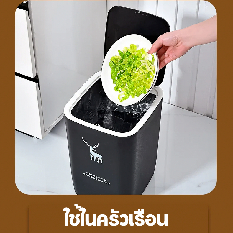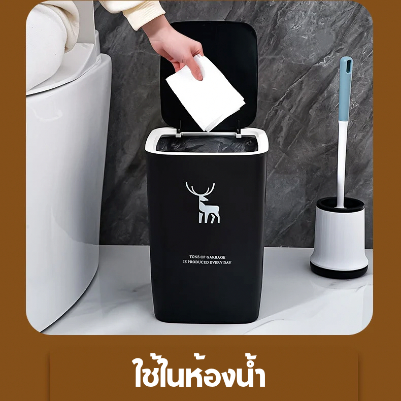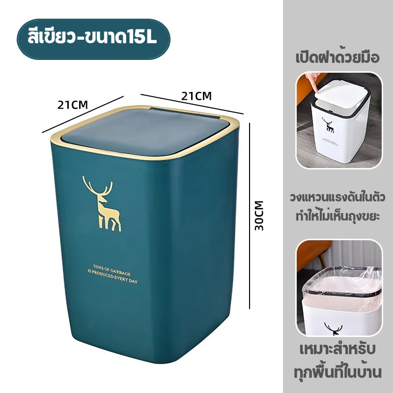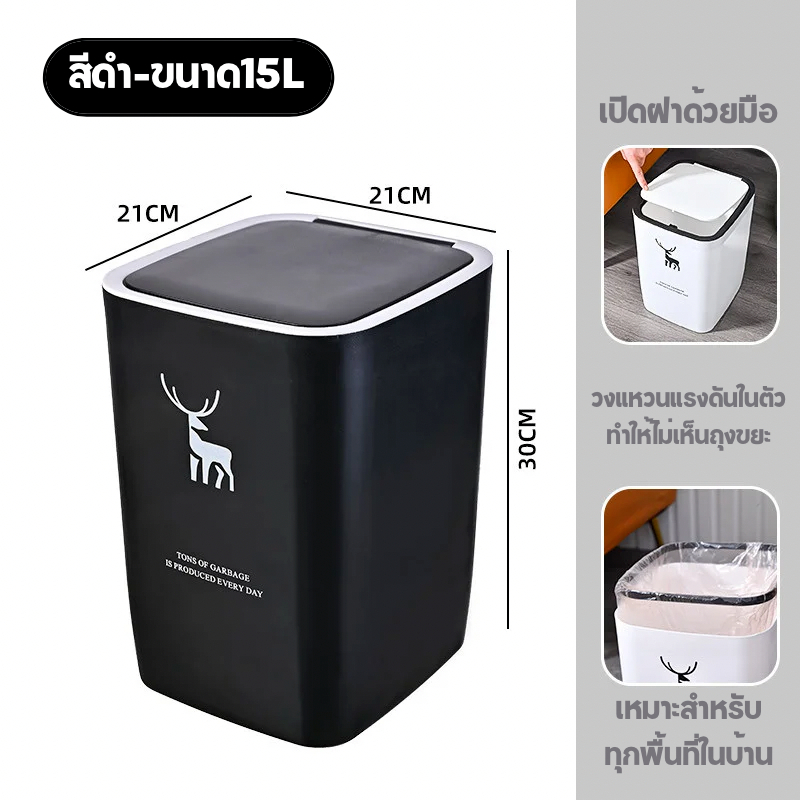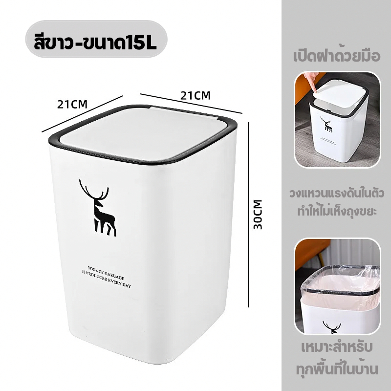 AD159 ถังขยะ ถังขยะสี่เหลี่ยม ทำจากพลาสติกอย่างดี ขนาด 15 ลิตร เปิดด้วยมือ ใช้ได้ทุกที่ในบ้าน