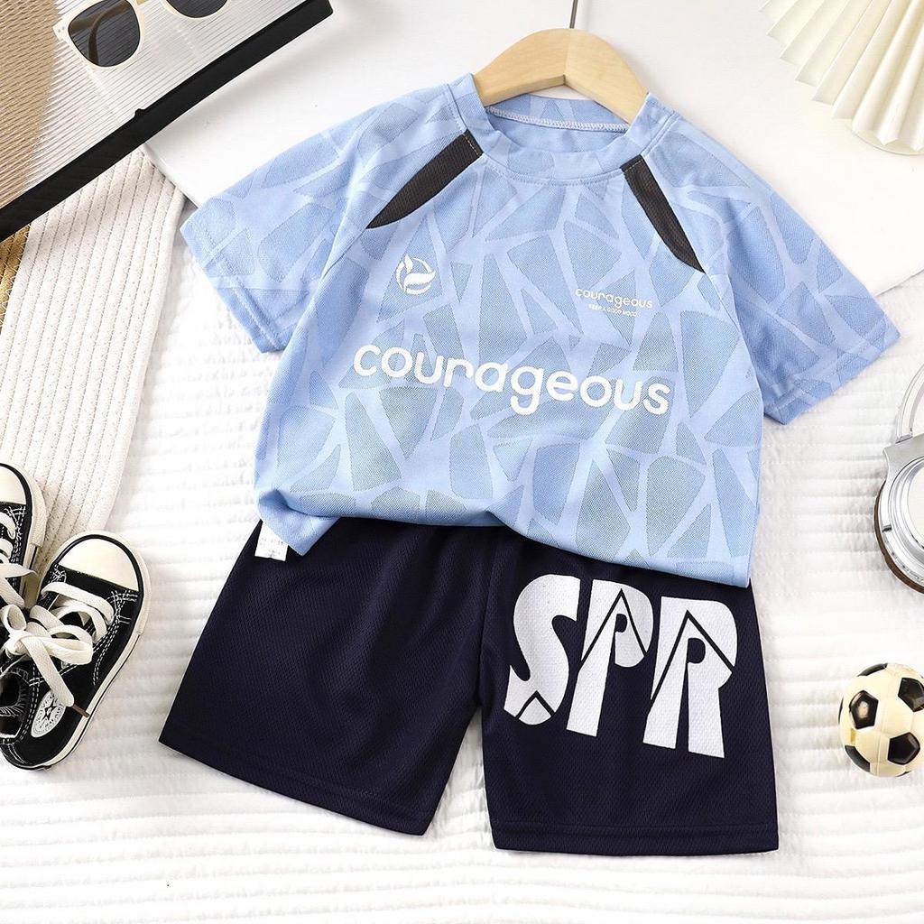 ชุดกีฬาเด็กชาย เสื้อแขนสั้น+กางเกงขาสั้น เนื้อผ้าระบายอากาศดี ไม่ร้อนไม่สะสมความชื้น 90-140cm D7940