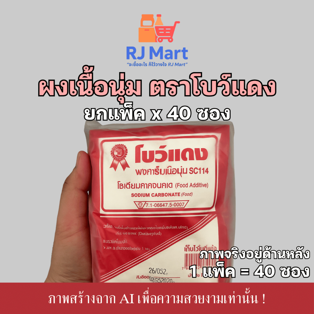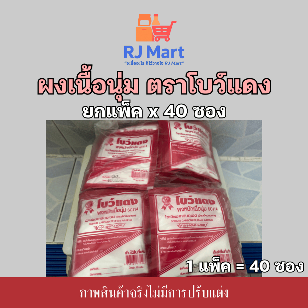 [ยกแพ็ค] ผงหมักเนื้อนุ่ม ตราโบว์แดง x 40 ซอง ซองแดง (โซเดียมคาร์บอเนต)