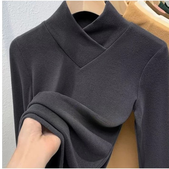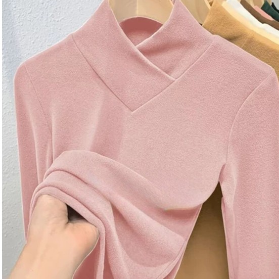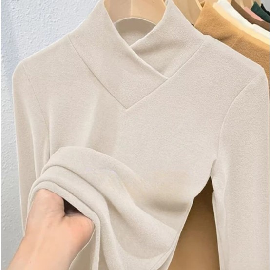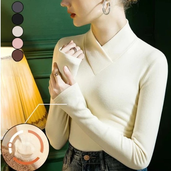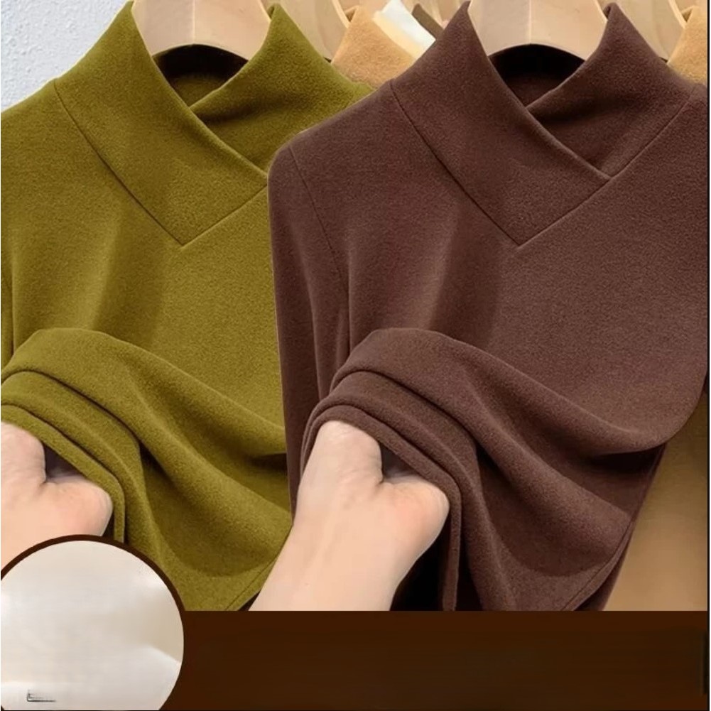 🕯️ 🙏[5 สี] เสื้อความร้อนแขนยาวคอปกไขว้มีสไตล์ของผู้หญิงฤดูใบไม้ร่วงฤดูหนาวสลิมฟิตเสื้อยืดพื้นฐานที่อบอุ่น