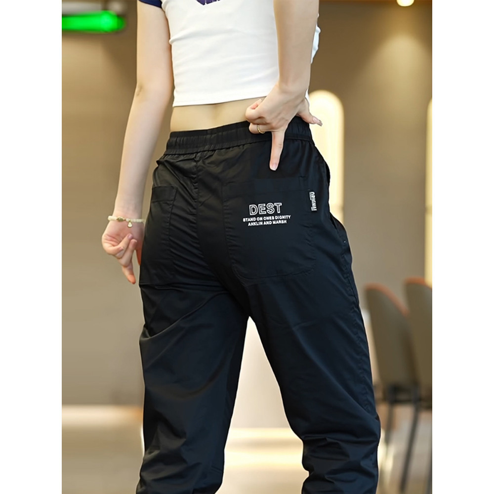 โดยรวมผ้าไหมน้ําแข็งหลวมฤดูใบไม้ผลิฤดูใบไม้ร่วงฤดูร้อนบางกางเกงแห้งเร็วสไตล์ใหม่กีฬาข้อเท้ายาวกางเกงลําลอง