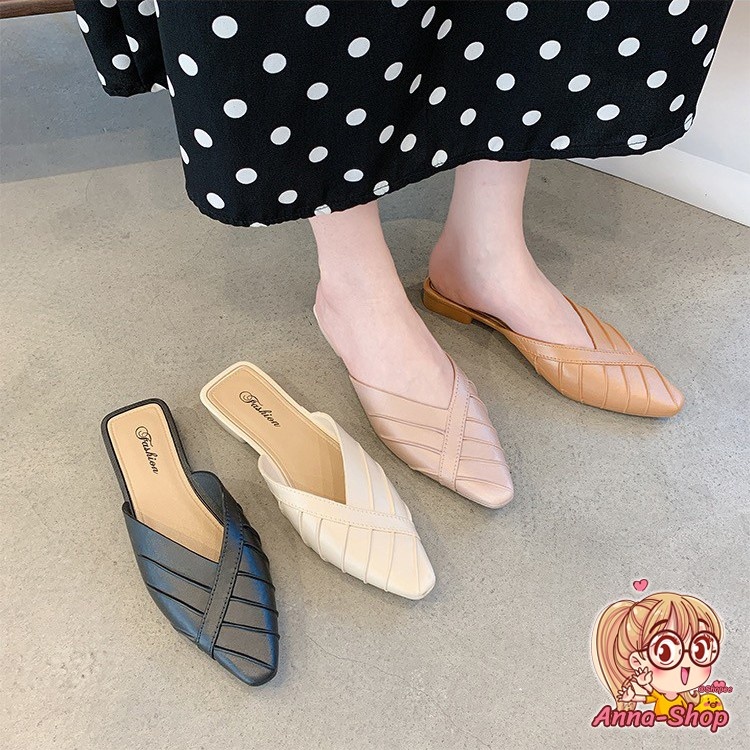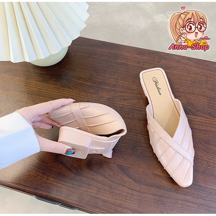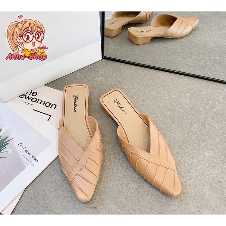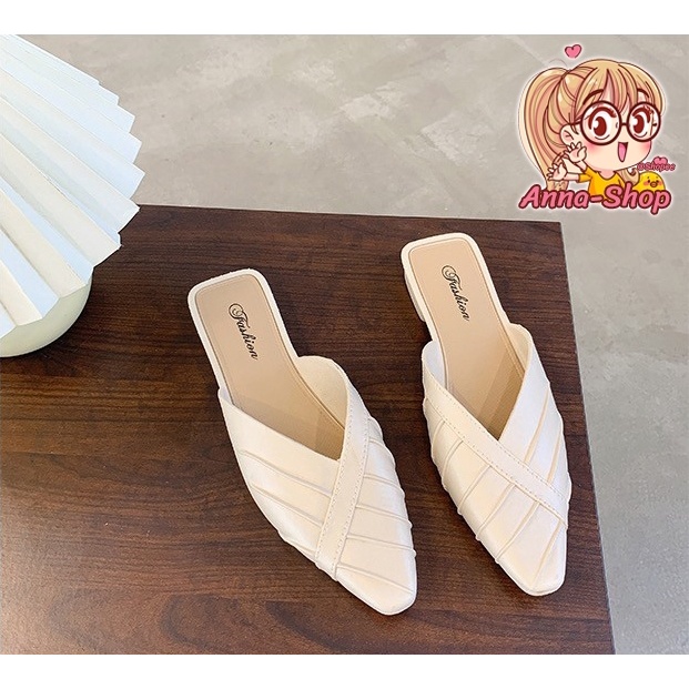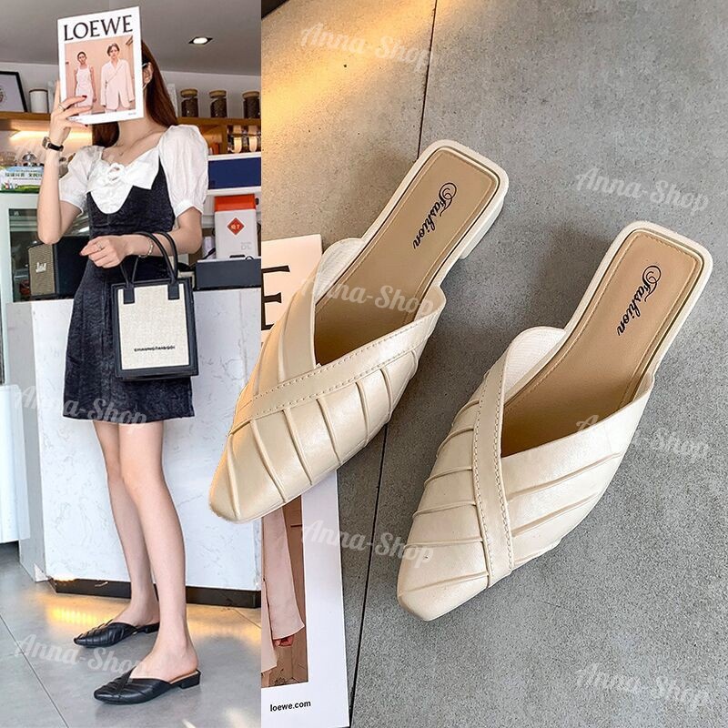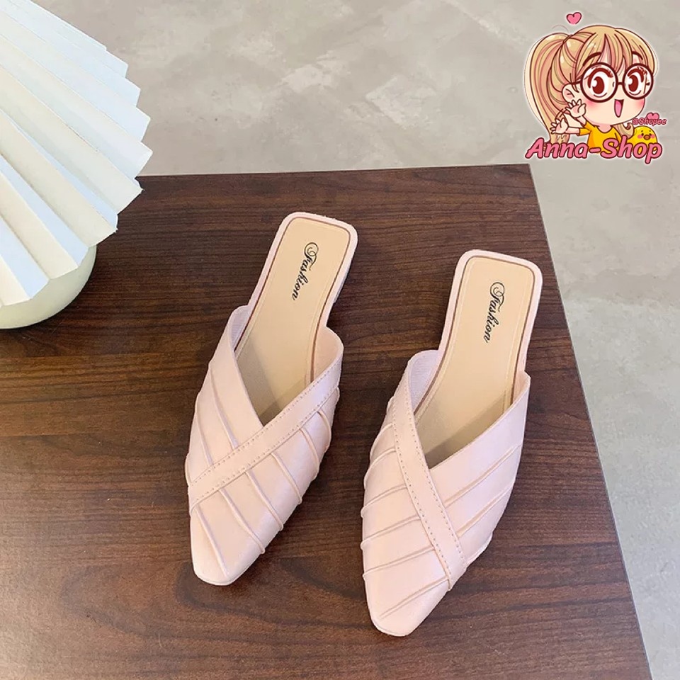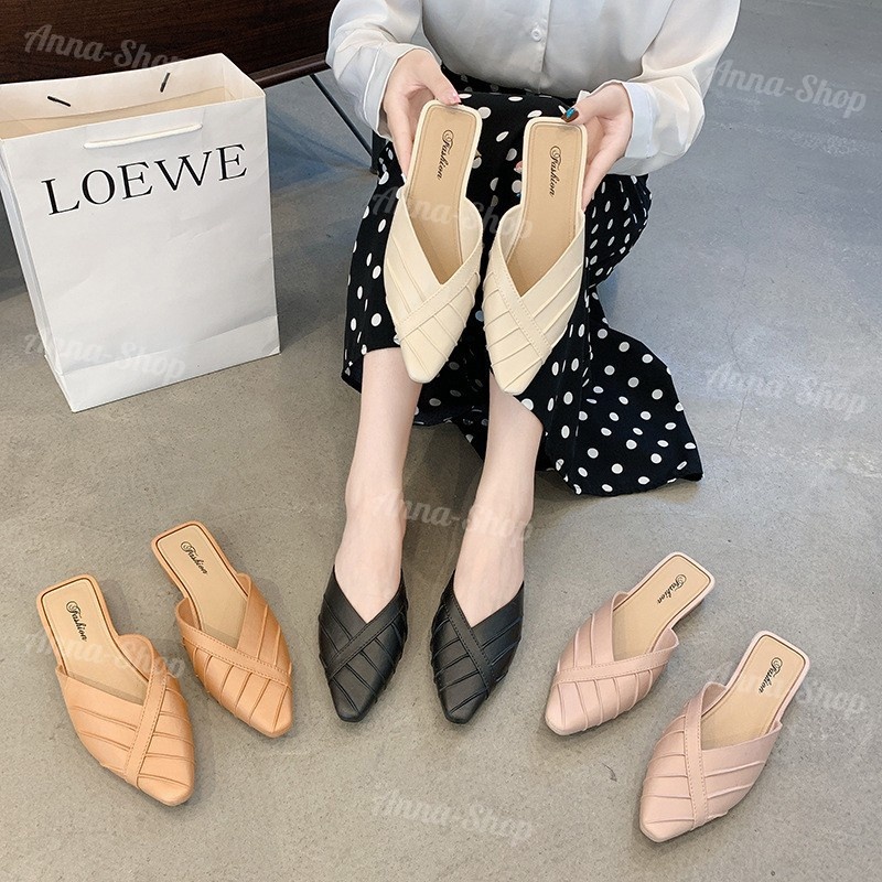 รองเท้าแฟชั่น เปิดส้น หัวแหลม ส้นแบน ดีไซส์เรียบหรู สีสดใส ทรงเรียบร้อย T33