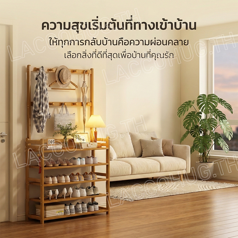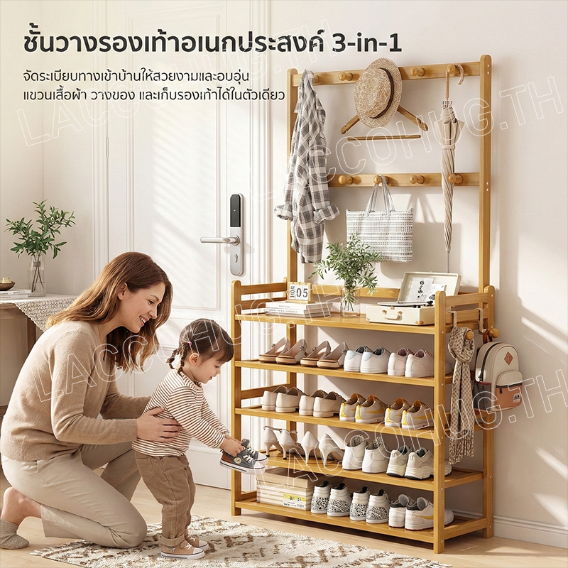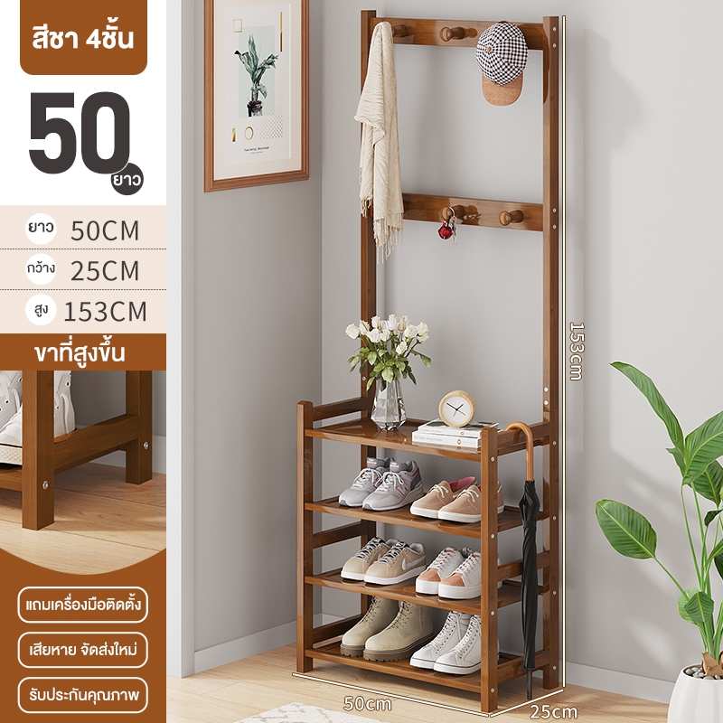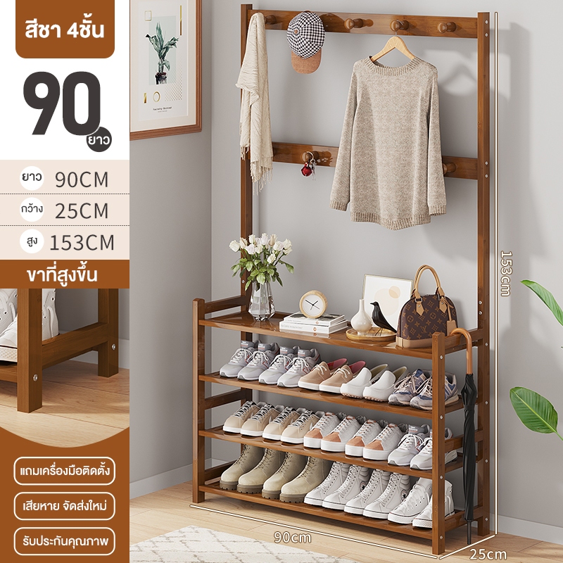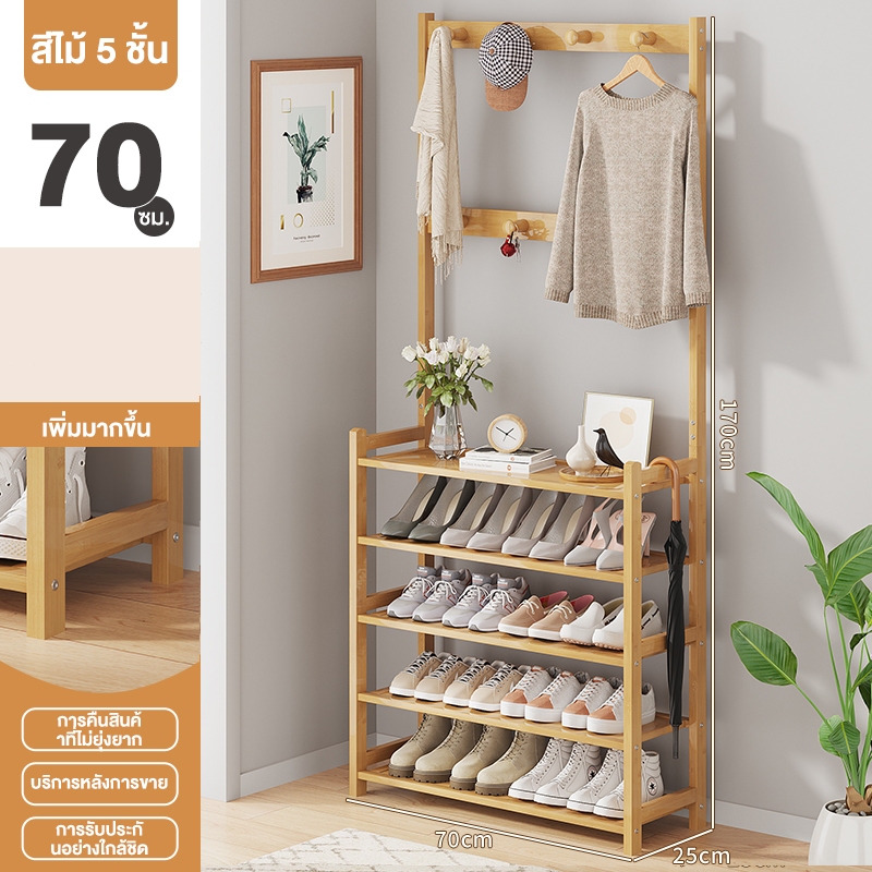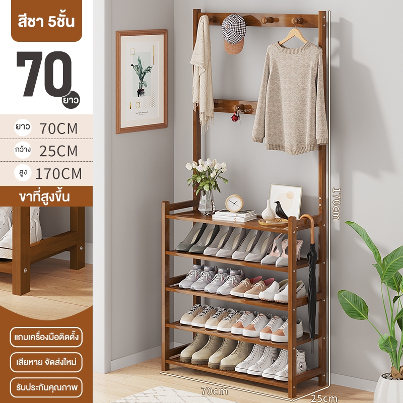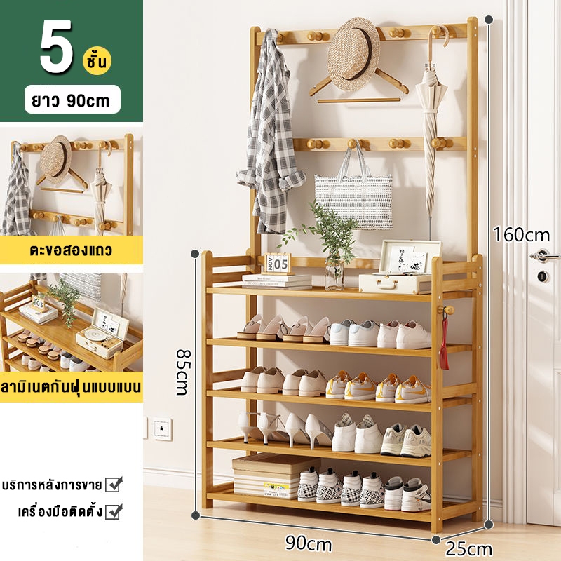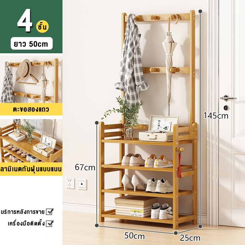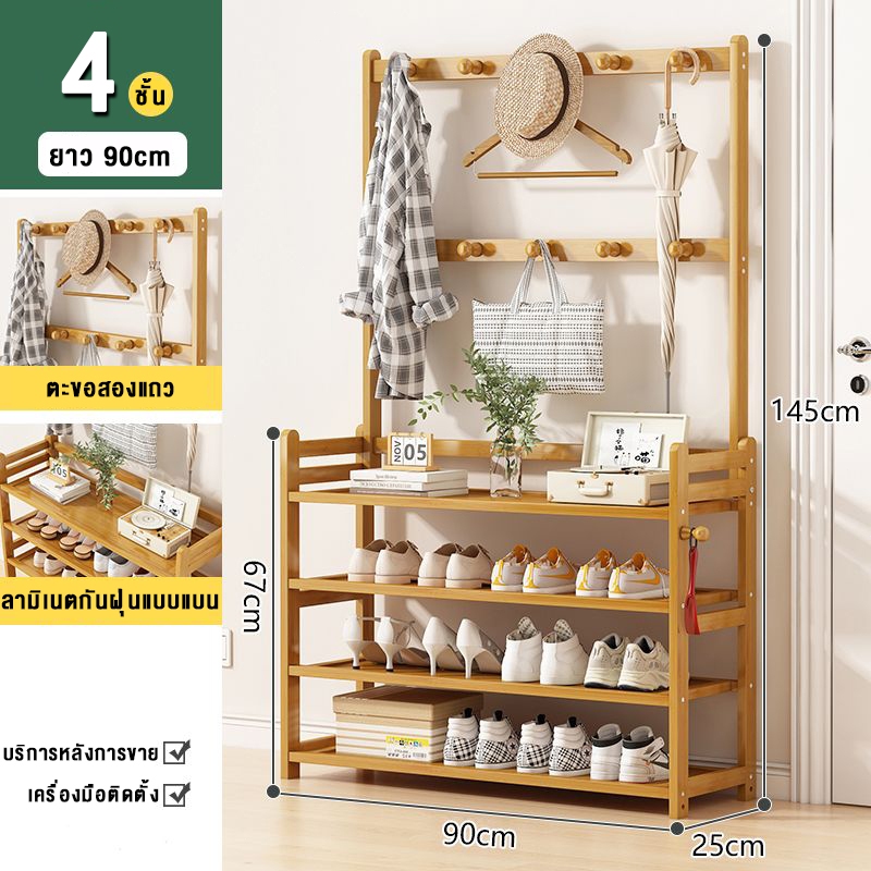 ชั้นวางรองเท้า ราวแขวนผ้า ราวแขวนผ้ามีตะขอ แขวนเสื้อผ้า+หมวก มีราวแขวนรองเท้า ราวทำจากไม้ไผ่ กันน้ำ ทนทาน สวยงาม น่าใช้