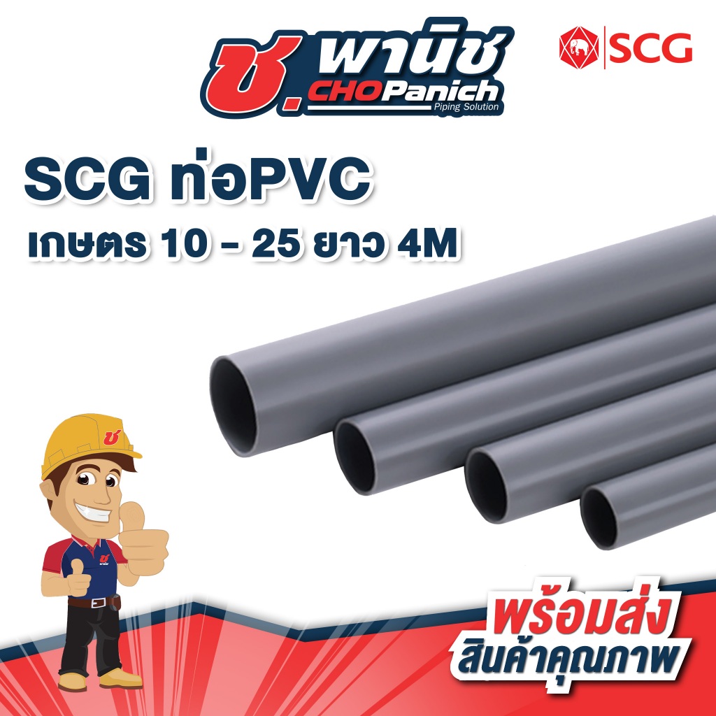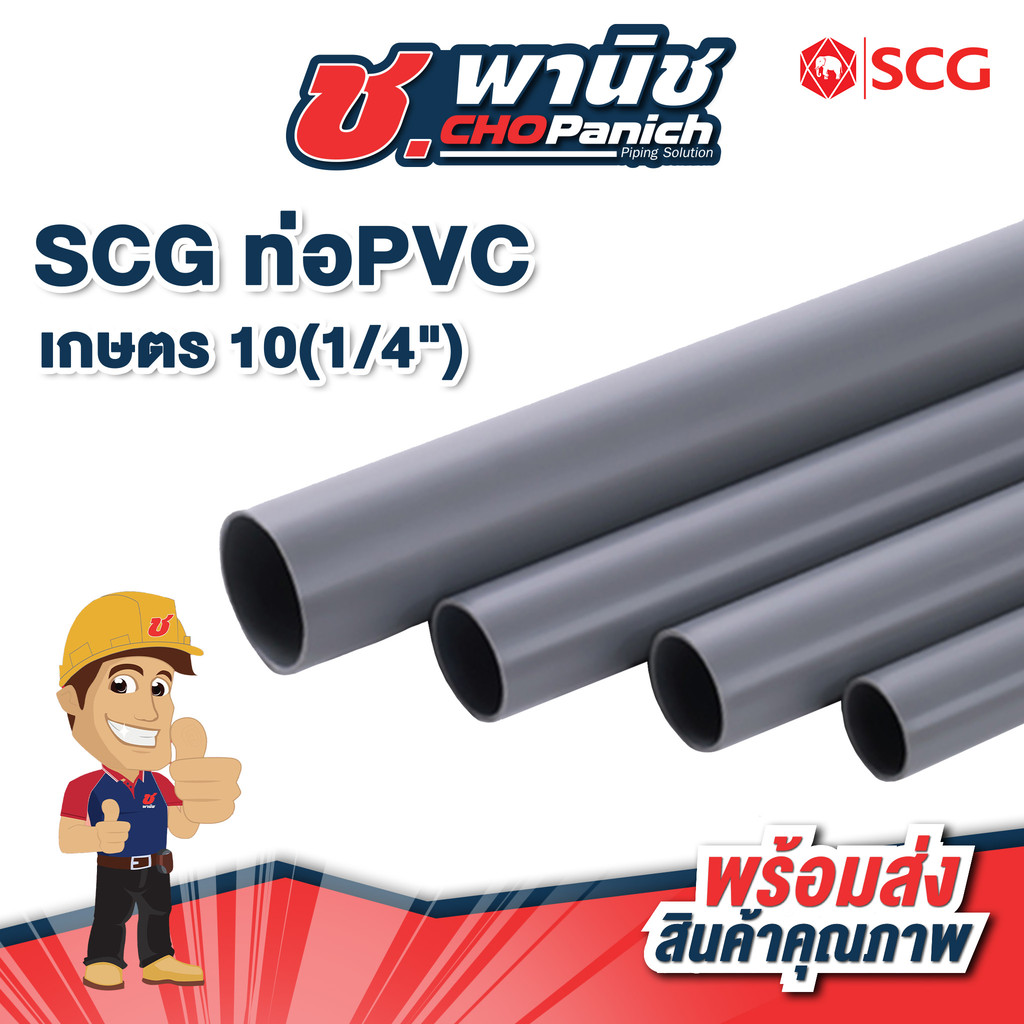 SCG ท่อPVC-เกษตร สีเทา ขนาด 1/4"-1" (10 - 25mm) ยาว 4M (ตัดท่อนละ 2เมตร)