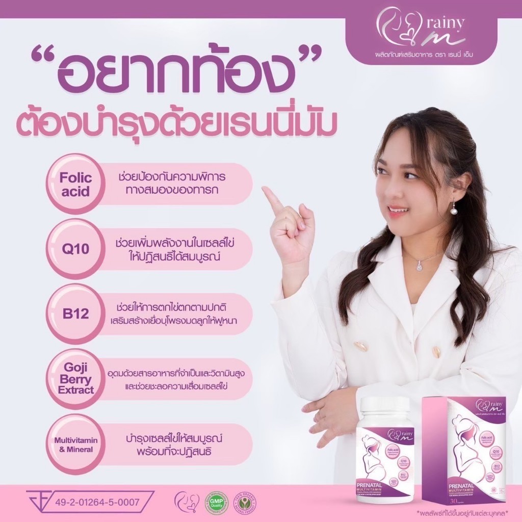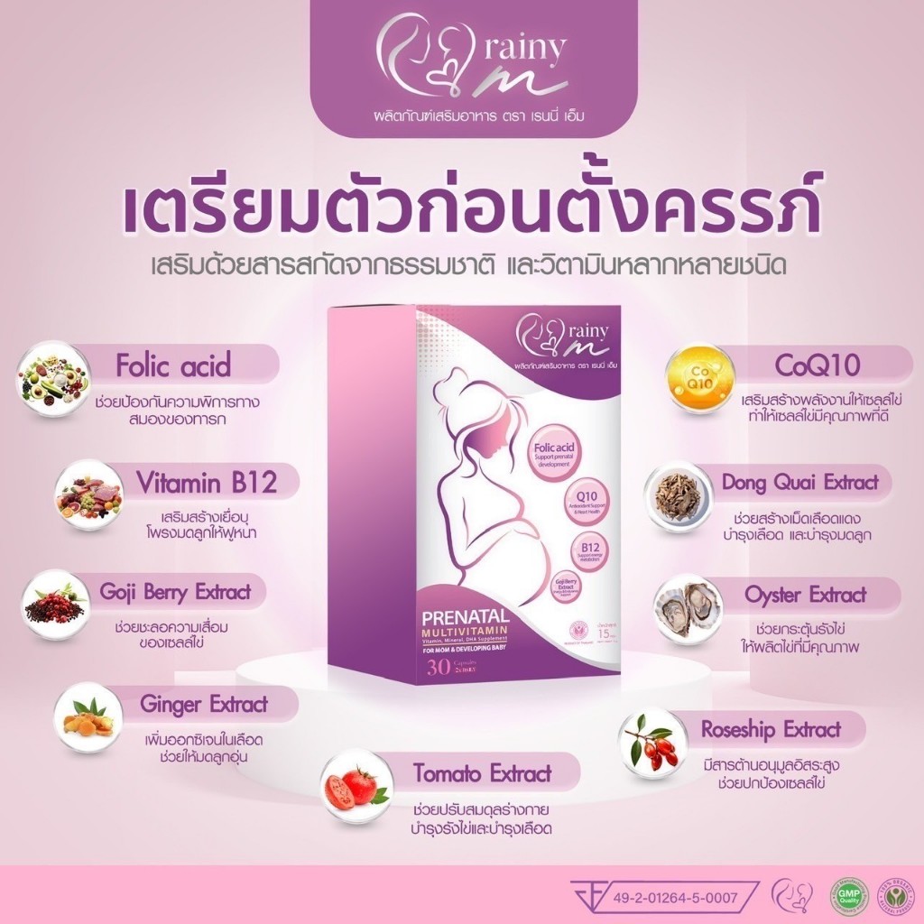 เรนนี่มัม ผลิตภัณฑ์เสริมอาหารสำหรับคุณเเม่เตรียมตั้งครรภ์ Rainymum