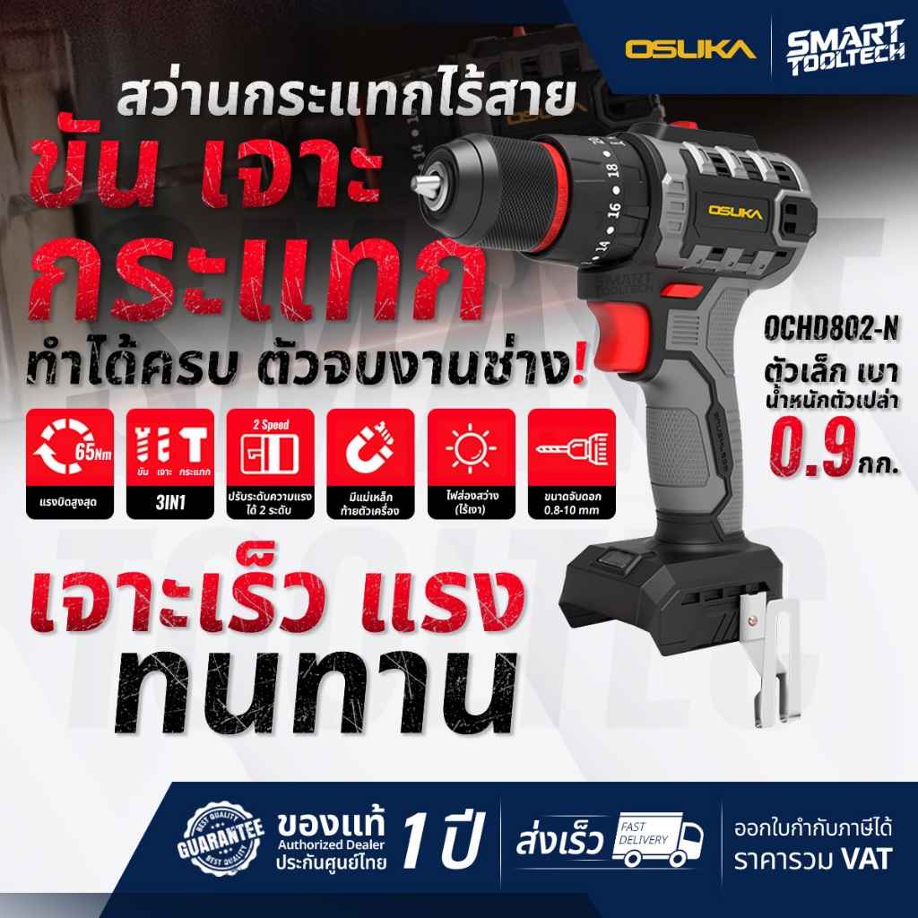 🔥รุ่นใหม่ปี2026 ส่งด่วน🔥 สว่านกระแทกไร้สาย 20V OSUKA OCHD802-D2 / OCHD802-D1 ( BLมอเตอร์ ) สว่าน