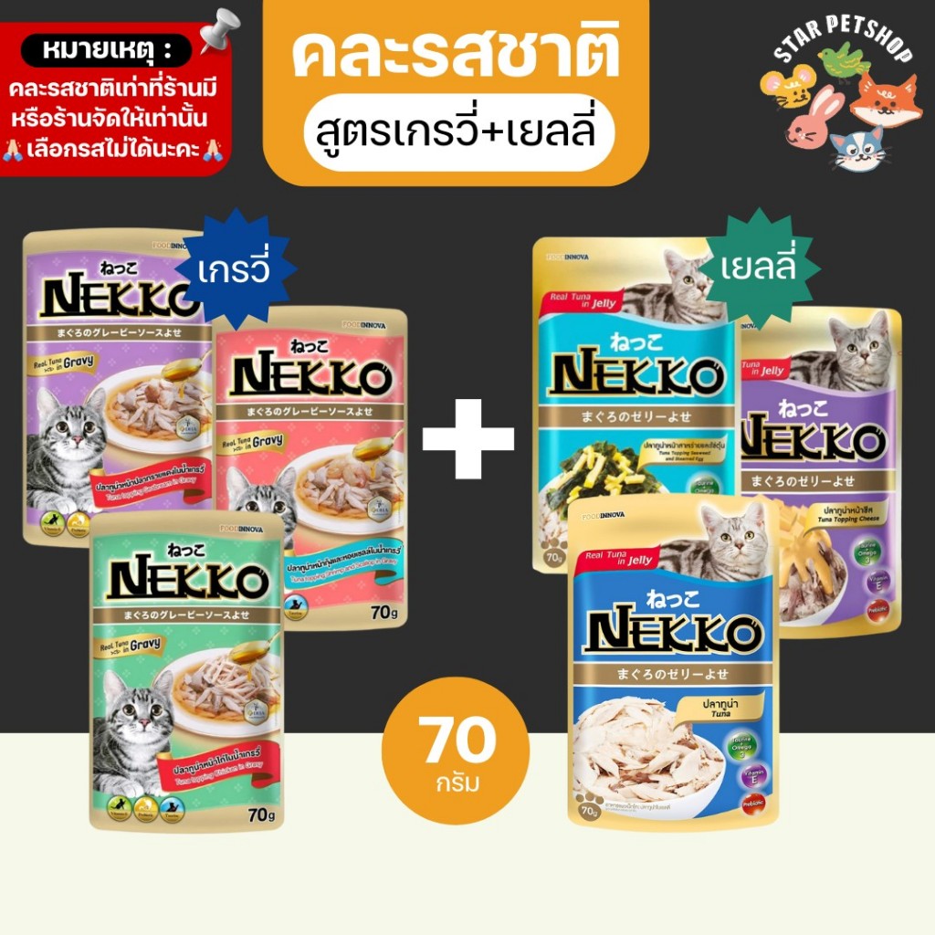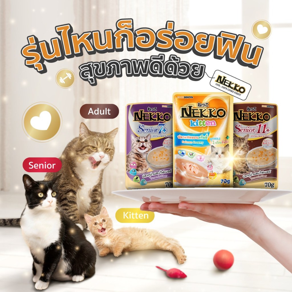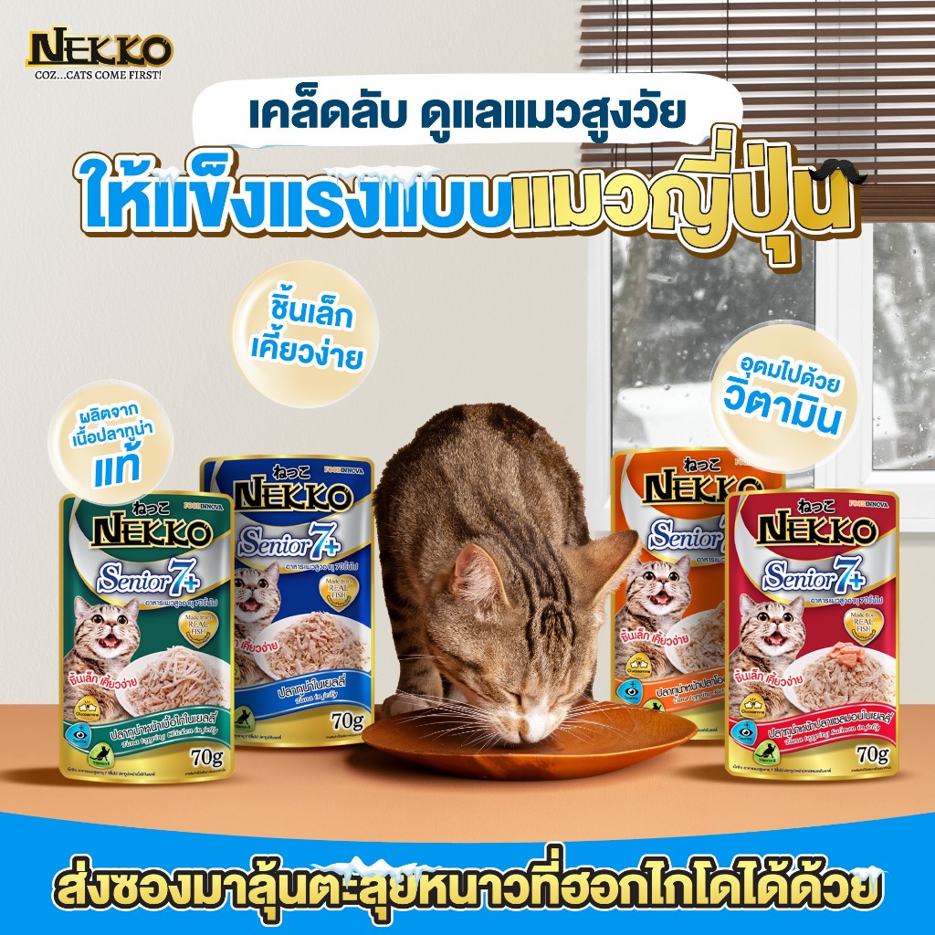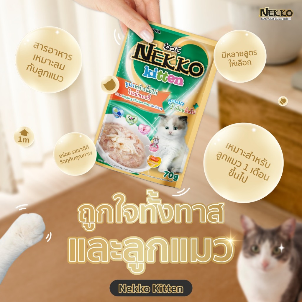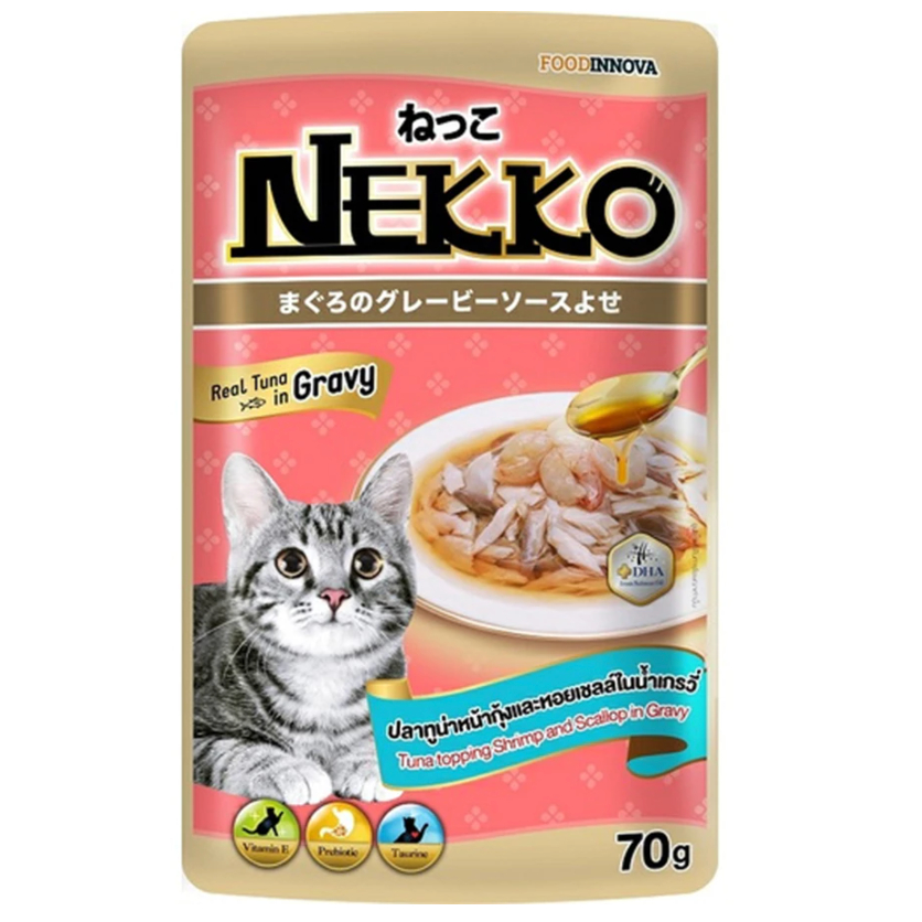 Nekko เน็กโกะ อาหารเปียกแมว แมวโต ลูกแมว Omega3 บำรุงขนและผิวหนัง 70g.*12ซอง