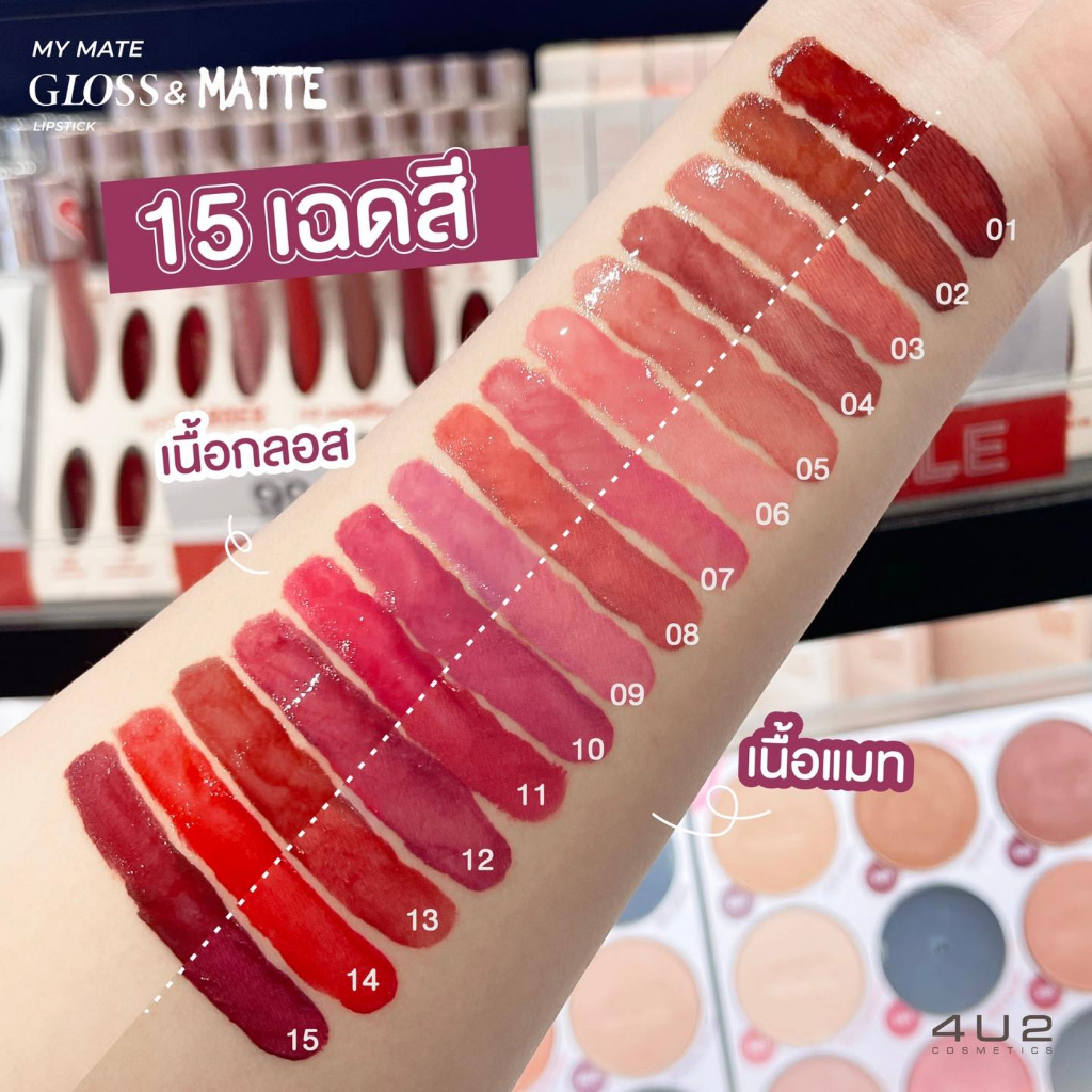 ถูก/แท้/มีไลฟ์ ลิป 4U2 My Mate Gloss & Matte Lipstick ลิปกระจก เนื้อกลอส ปากฉ่ำ ฉ่ำวาว ติดท