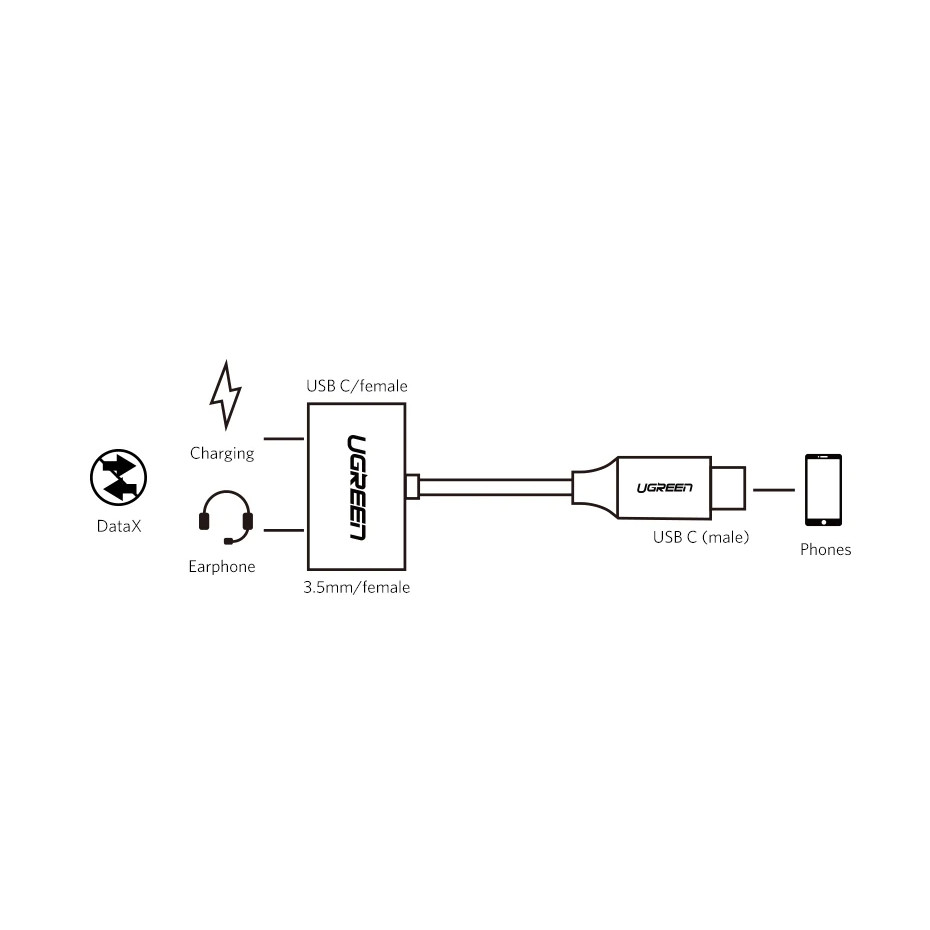 UGREEN 2-in-1 USB C ถึง 3.5 มม.USB C ชาร์จอะแดปเตอร์หูฟังพร้อม Fast CHARGING USB Type C ถึง 3.5 มม.เสียงสาย AUX