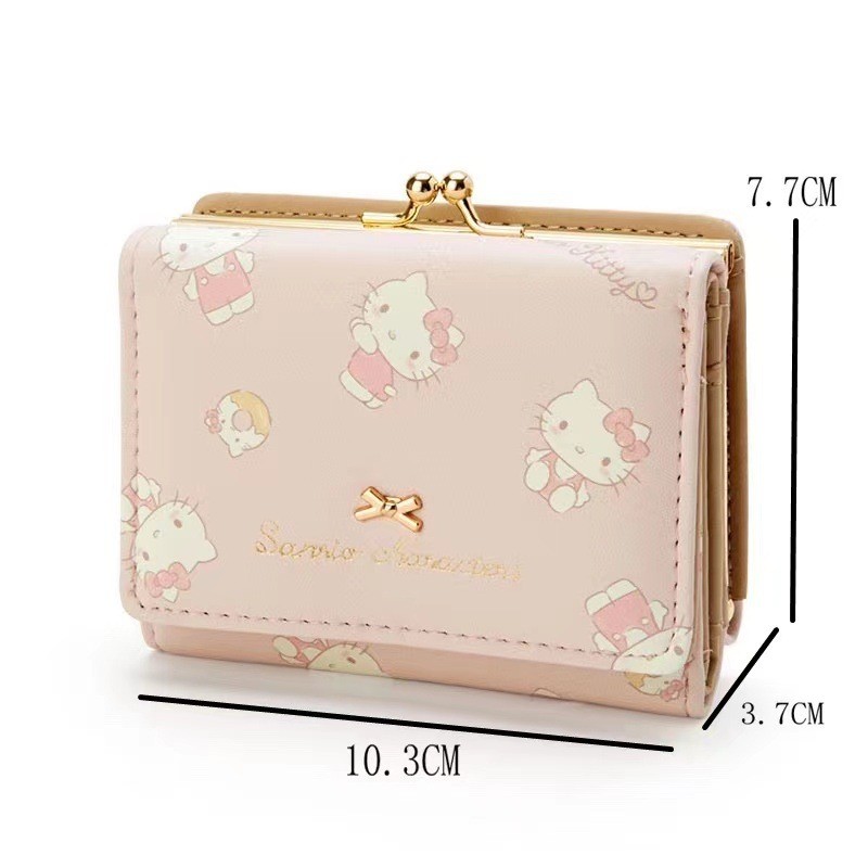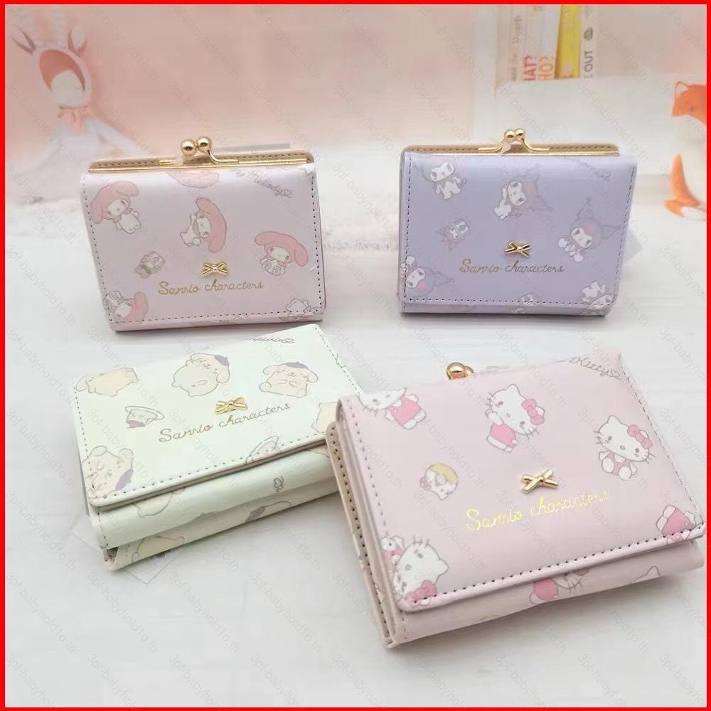 Sanrio HelloKitty mymelody Kuromi Pompom Purin PU ผู้หญิงกระเป๋าสตางค์สั้นซิปหัวเข็มขัดการ์ตูนบุคลิกภาพกระเป๋า