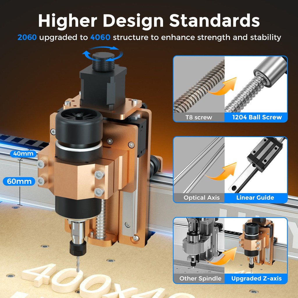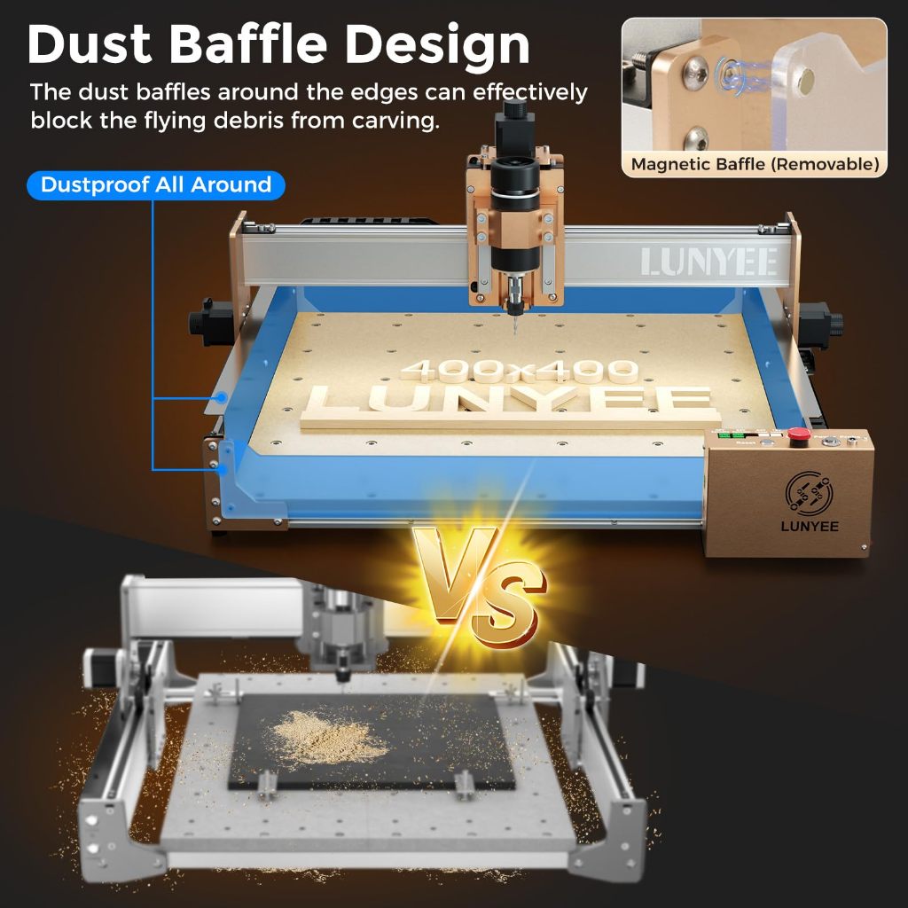 LUNYEE 4040 Pro CNC Router Machine เครื่อง cnc โลหะ 3 แกนแกะสลัก All-Metal CNC เครื่องพร้อมสกรูบอลและฝุ่น X/Y แกน GRBL ควบคุมสําหรับไม้โลหะอะคริลิคแกะสลักและตัด
