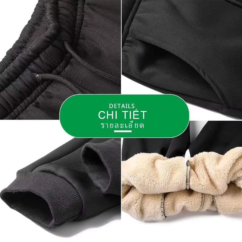 PLUS ขนาด 2025 ฤดูหนาว Thermal Joggers สําหรับชายขนแกะ-Lined PLUS ขนาดยืดหยุ่น Cuff หลวม Casual Sweatpants กางเกงสีดํา