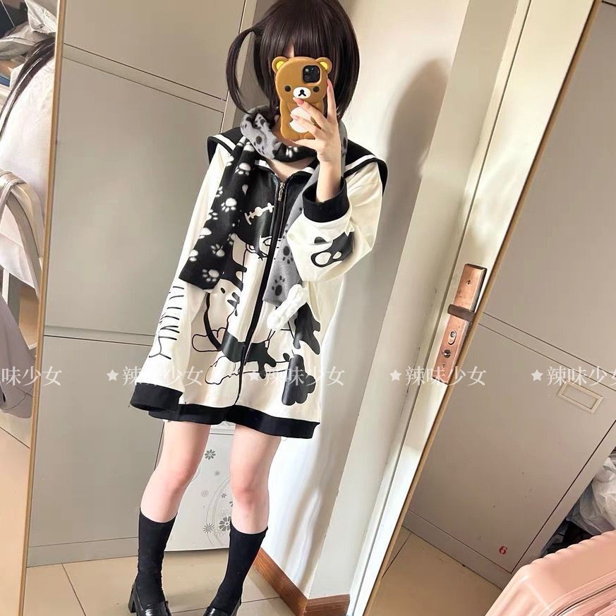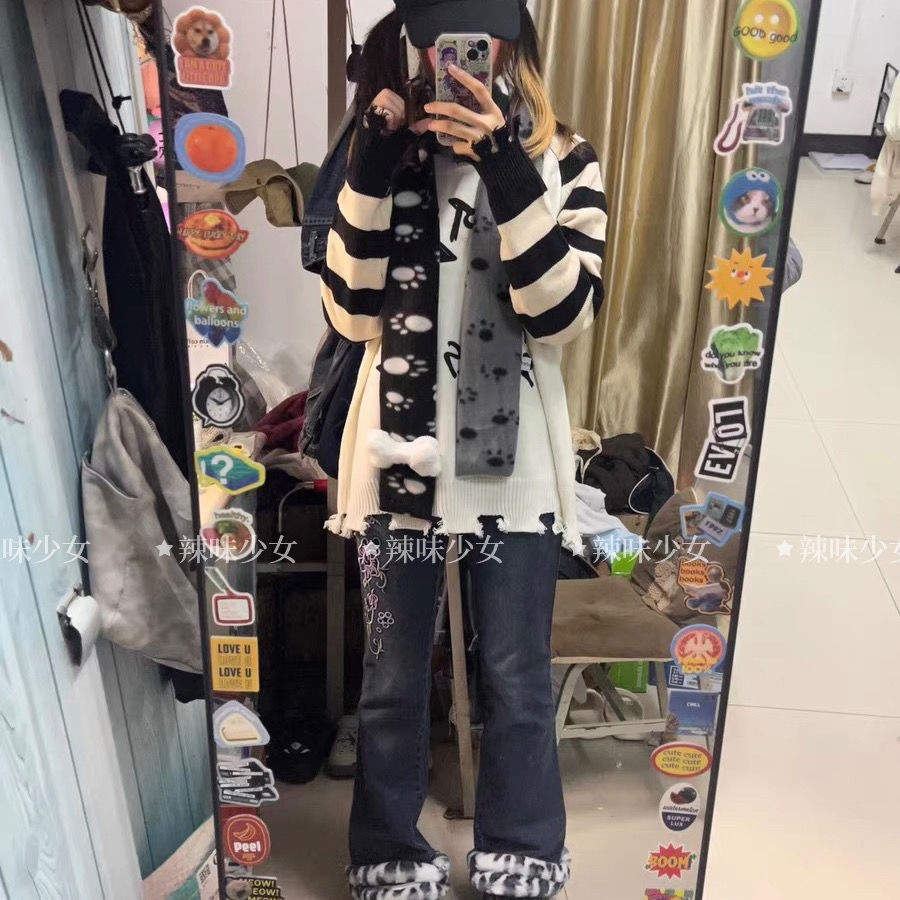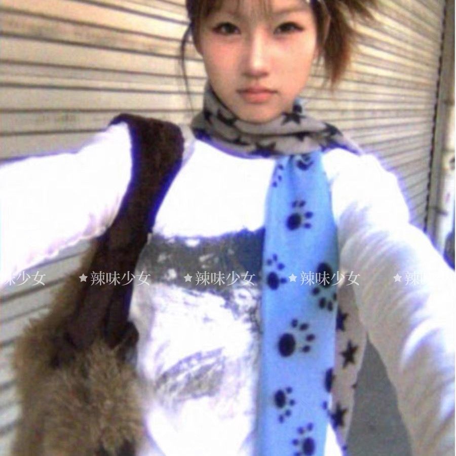 ผ้าพันคอ F&X สไตล์ Ghost Horse Millennium Y2K ดีไซน์เฉพาะตัว สไตล์หวานแบบเอเชีย chic