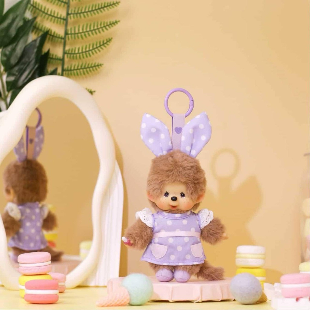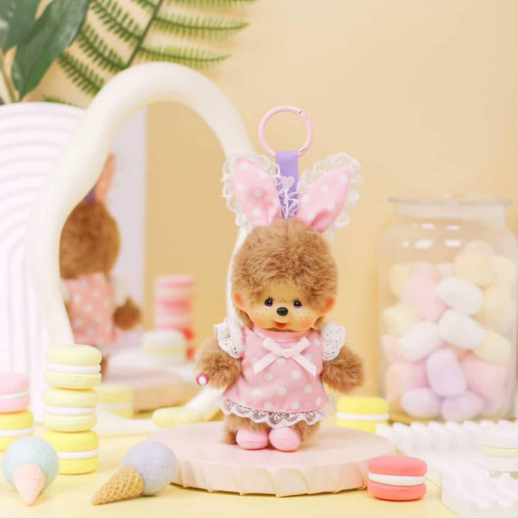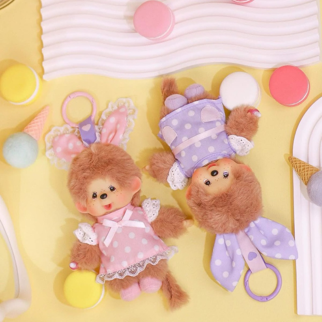 พร้อมส่งในไทย พวงกุญแจสำหรับห้อยกระเป๋า monchhichi ชุดเมดลาย polka dot คอลใหม่จากฮ่องกง