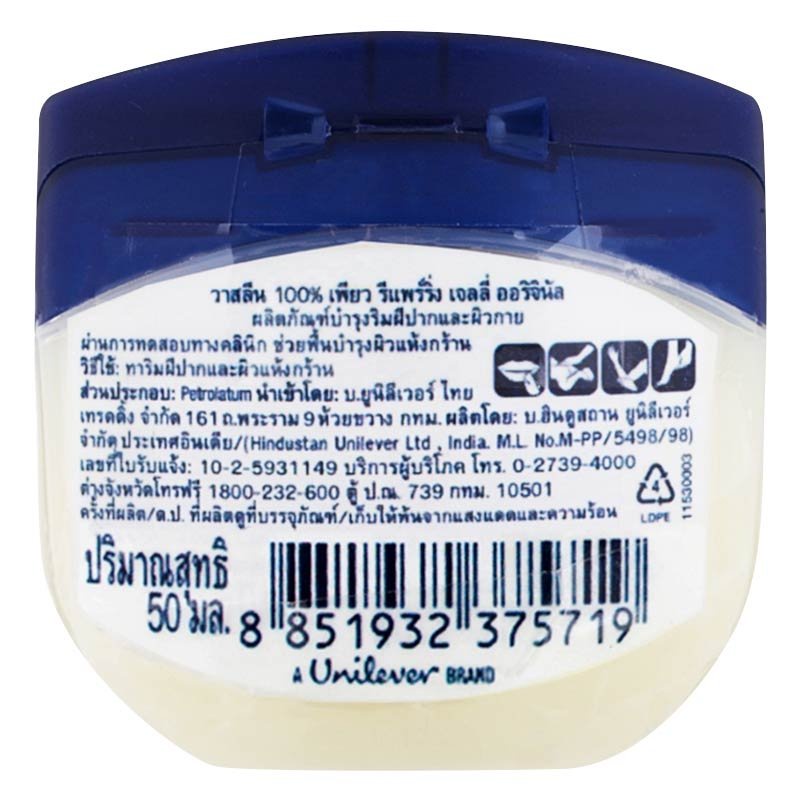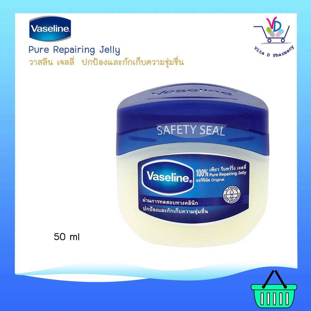 Vaseline วาสลีน เจลลี่ ปกป้องและกักเก็บความชุ่มชื่นเพื่อช่วยฟื้นบำรุงผิวแห้ง 50ml