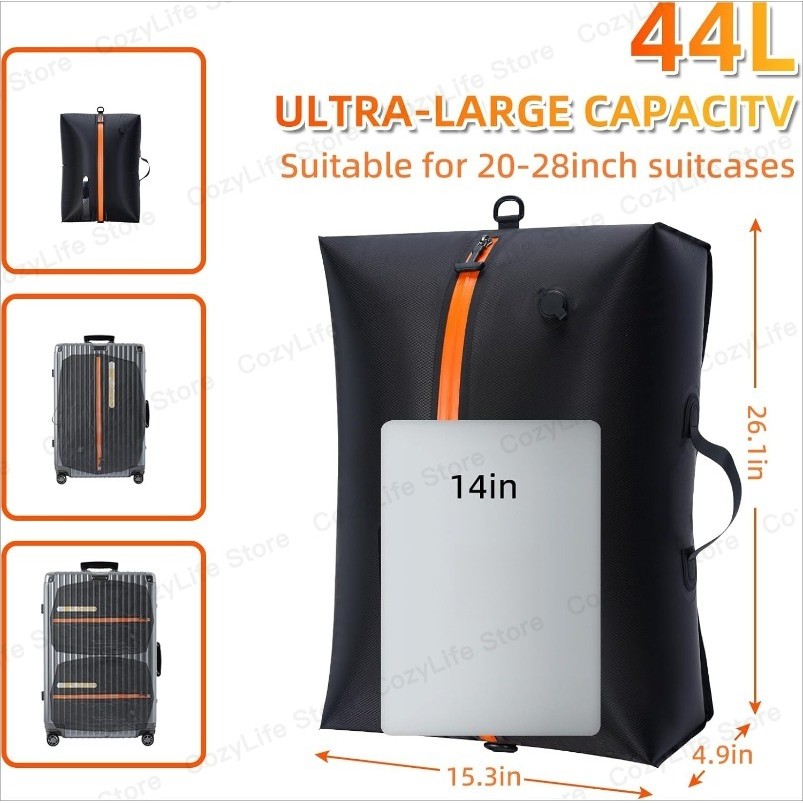 ถุงเก็บสูญญากาศสําหรับเดินทาง 2 แพ็ค, ถุงบีบอัดขนาดใหญ่ 44 ลิตรสําหรับกระเป๋าเดินทาง 22" +, สําหรับเสื้อผ้า, ผ้าห่ม, กระเป๋าเดินทาง, กร ะเป๋าเป้สะพายหลัง