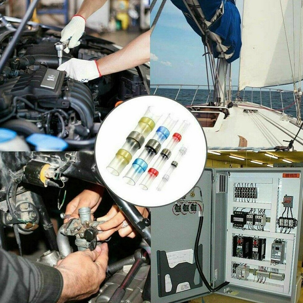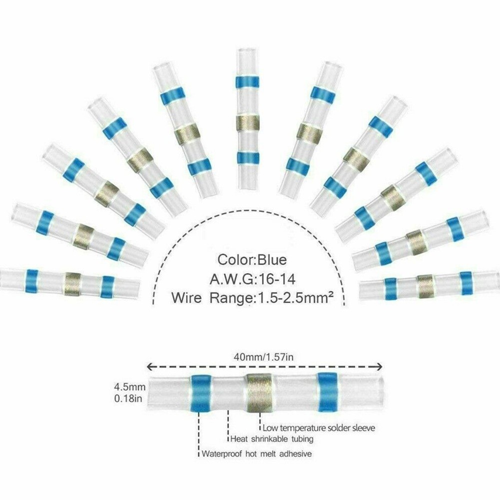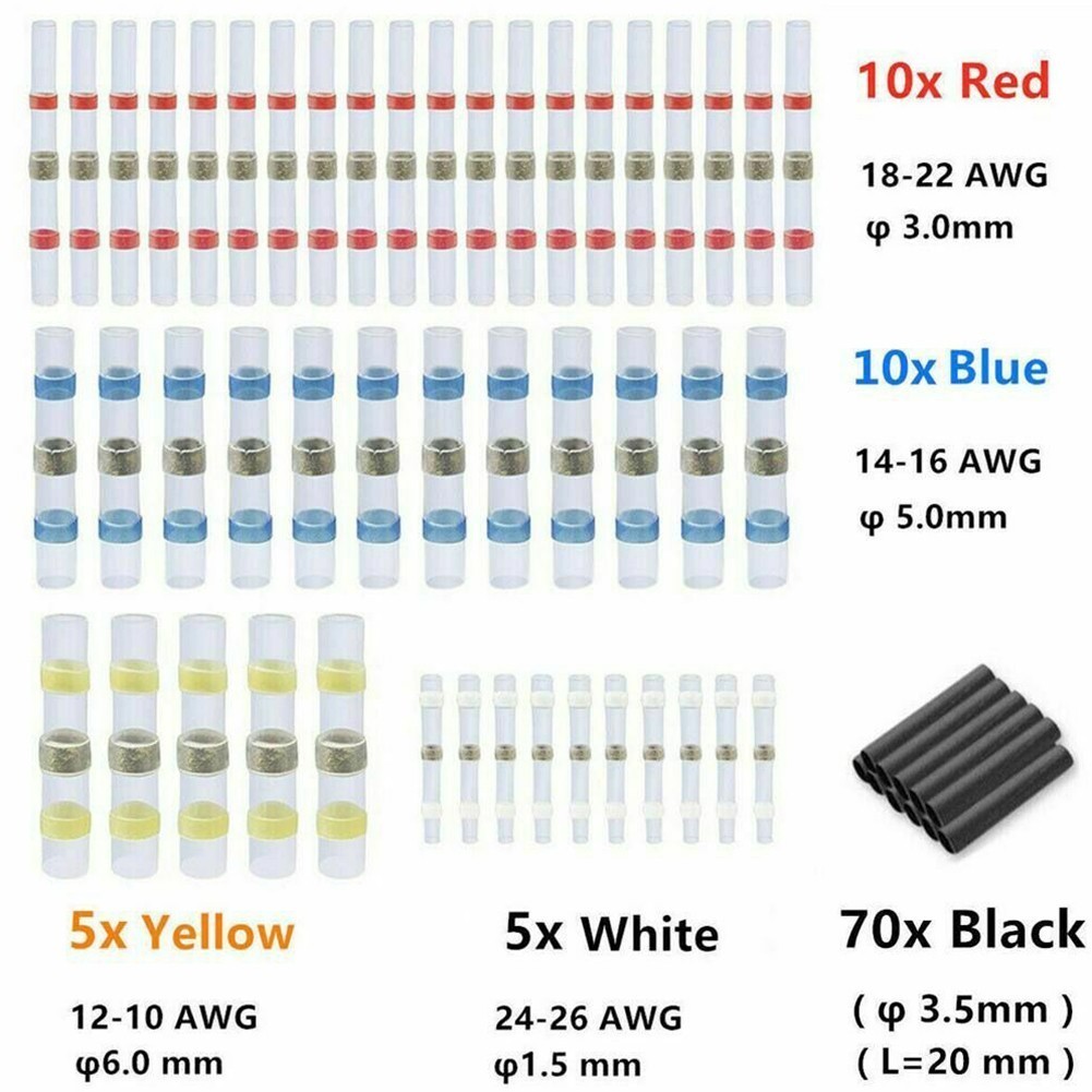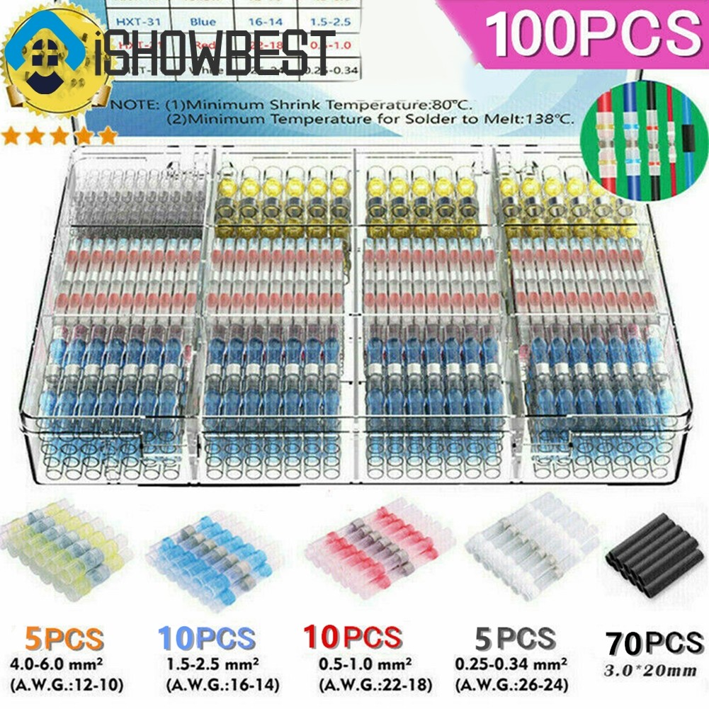 100ชิ้นซีลบัดกรีความร้อนหดแขนลวดก้นขั้วเชื่อมต่อกันน้ํา
