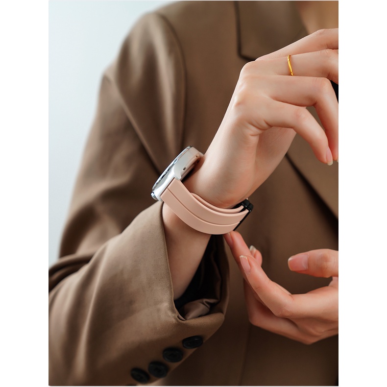 สายซิลิโคนเดิมสําหรับ Samsung Galaxy Watch 7 6 5 4 FE 40 มม.44 มม.คลาสสิก 43 มม.47 มม.หัวเข็มขัดแม่เหล็กสําหรับ Galaxy Watch4 Watch5 Pro