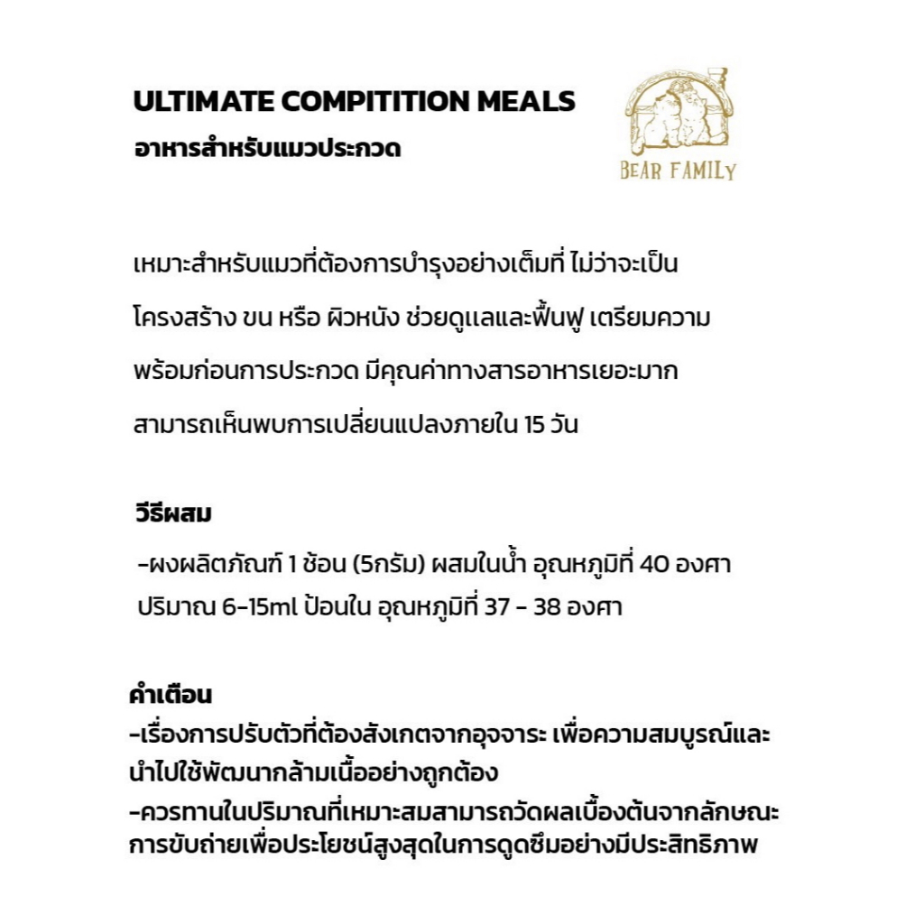 ULTIMATE COMPETITION MEALS อาหารสำหรับแมวประกวด เสริมสร้างโครงสร้าง Bear Family