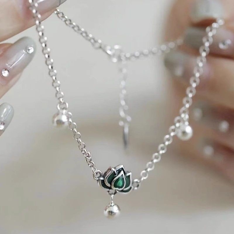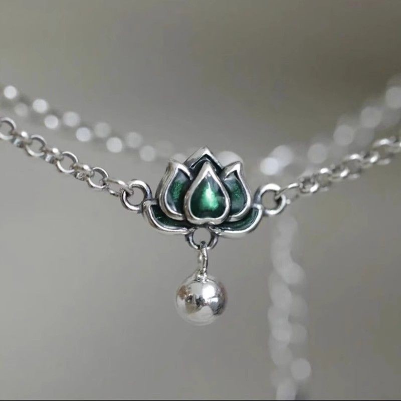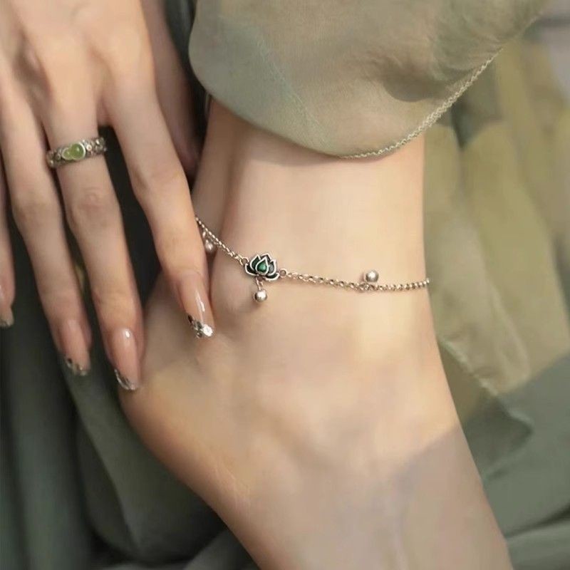 [เสี่ยวหงซู่ แนะนํา] ใหม่สไตล์จีนสามชีวิตดอกบัวสีเขียวเคลือบกําไลข้อเท้านิชสไตล์ย้อนยุครอบลูกปัดโซ่ที่เรียบง่ายทุกการแข่งขันกําไลข้อเท้า หยิ่นส์2ไทย20250417