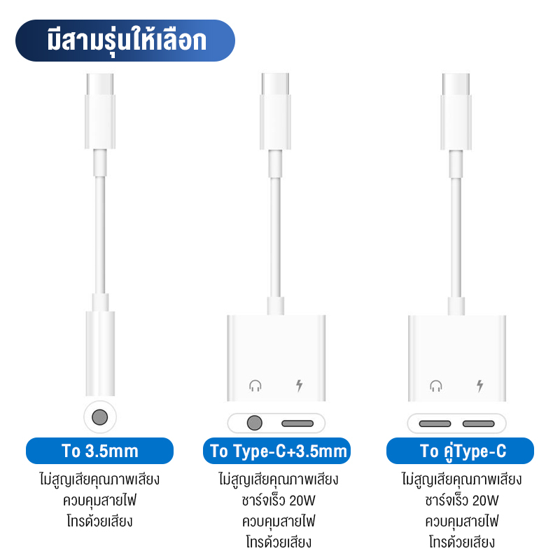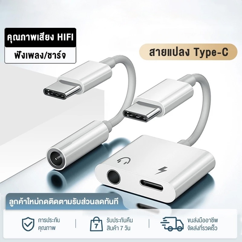 สายแปลงหูฟัง หางหนู Type C to Audio 3.5 + USB C สายแปรงหูฟัง แปลงชาร์จและต่อหูฟัง 3.5 mmได้พร้อมกัน