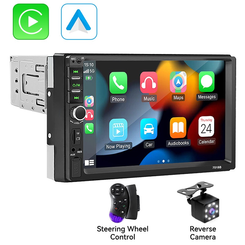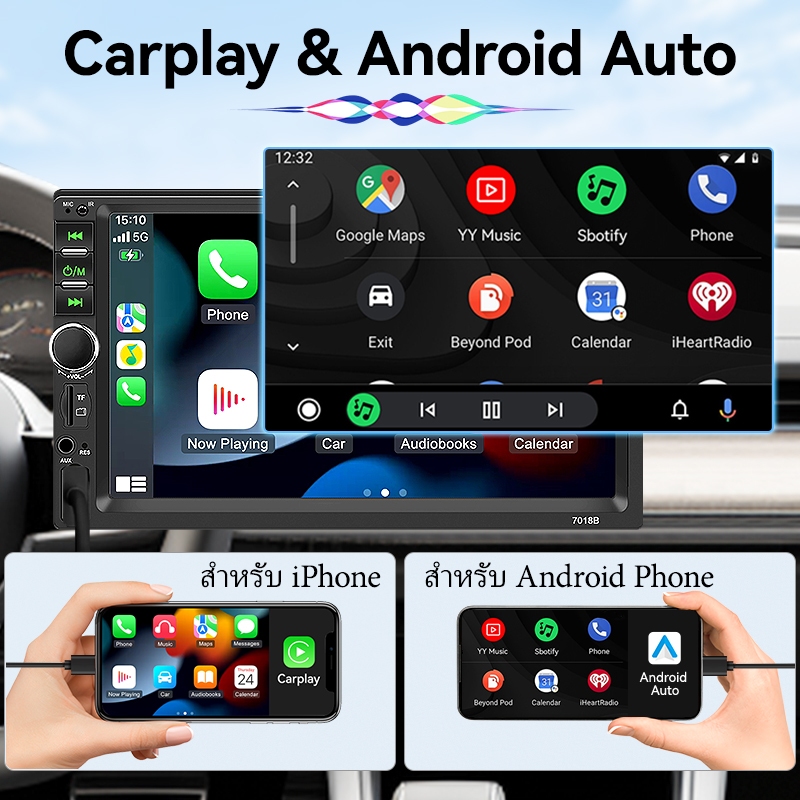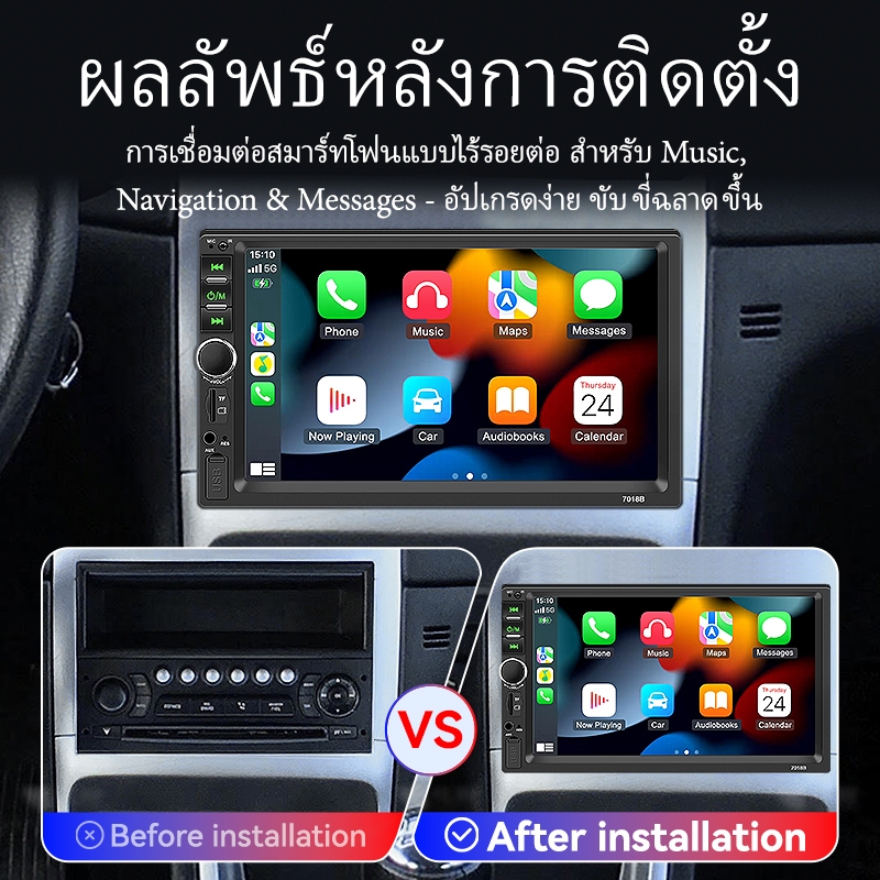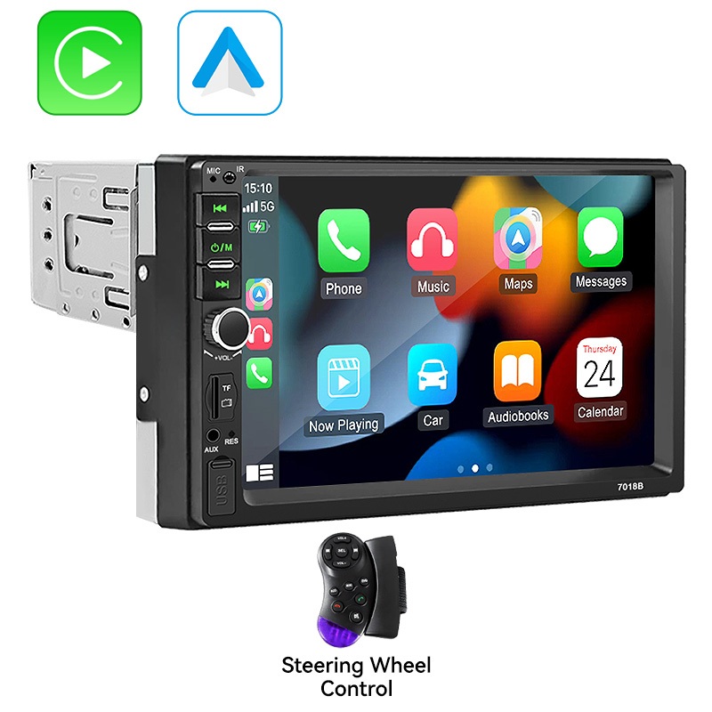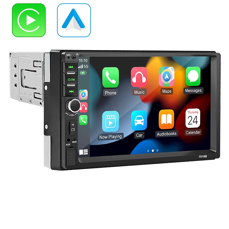 VENBES วิทยุติดรถยนต์ 7 นิ้ว 1 Din Carplay Android Auto MP5 เครื่องเล่นมัลติมีเดีย บูลทูด USB TF AUX