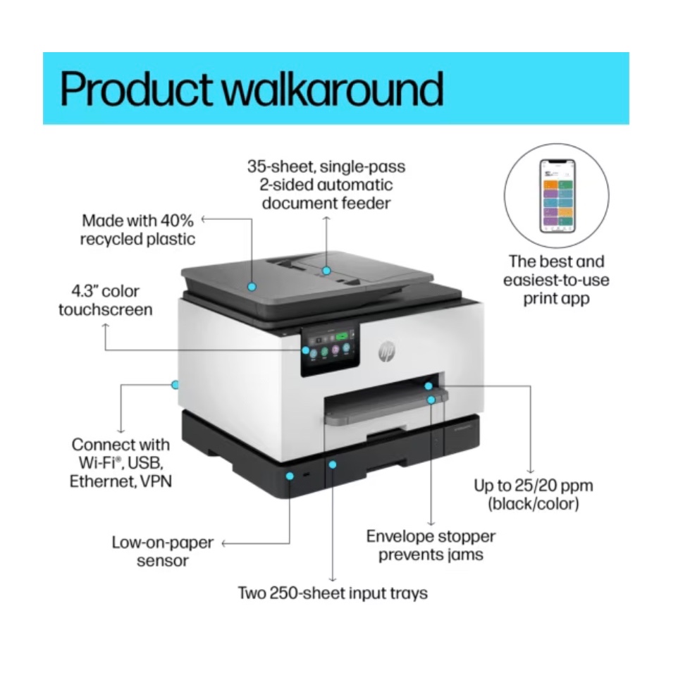 เครื่องปริ้นเตอร์ HP OfficeJet Pro 9130 All-in-One Printer