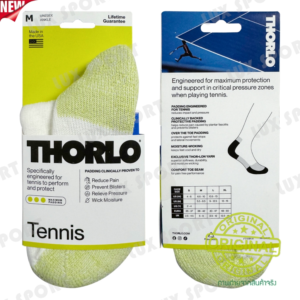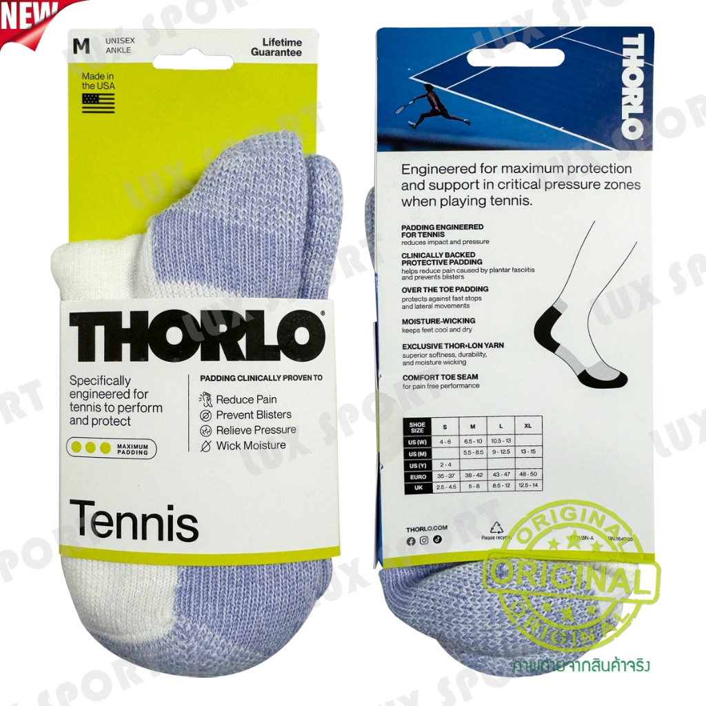 Thorlo Socks Size.M-MEDIUM (TMX/TMM ข้อสั้น/ปิดตาตุ่ม) Unisex ถุงเท้าเทนนิสคุณภาพ สินค้าแท้ 💯% จาก อเมริกา