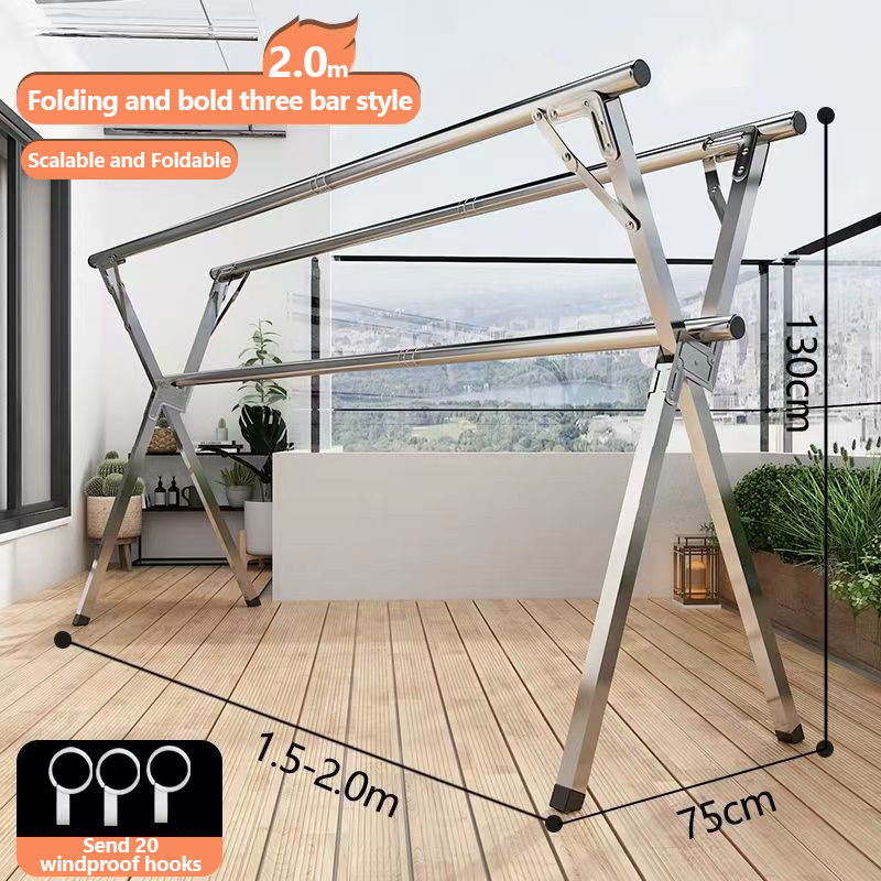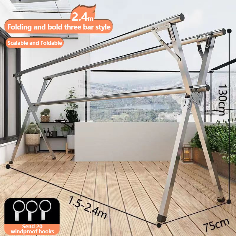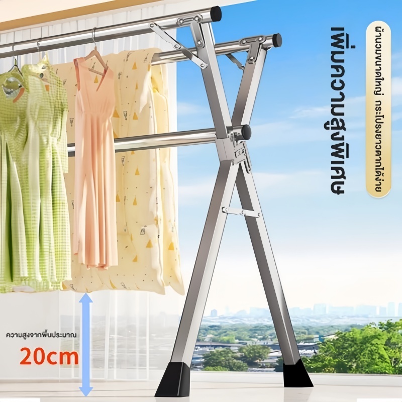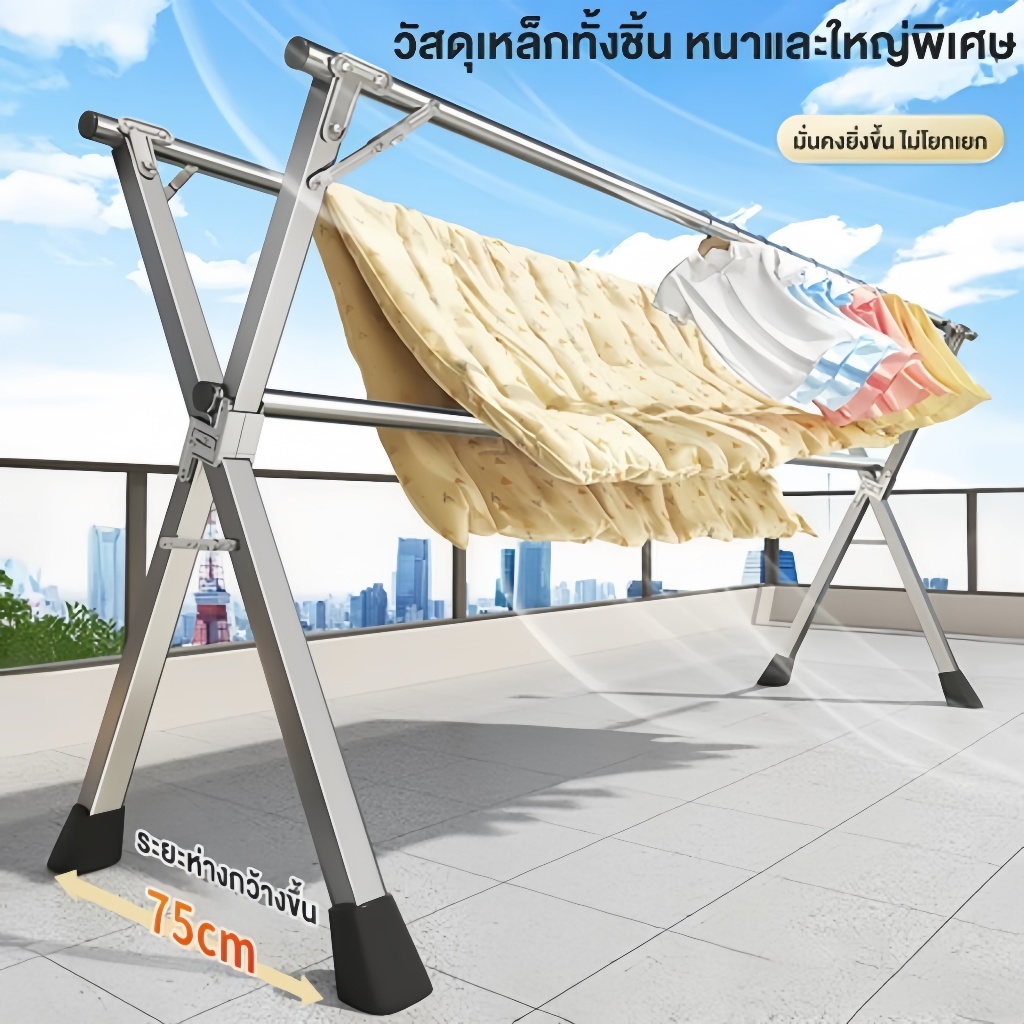 🔥 [COD]ราวตากผ้า พับได้ 304 สแตนเลสรุ่น พับเก็บง่าย ยืดหดได้ ราวตากผ้า ราวตากผ้าพับได้ ราวตากผ้าตัว X Drying Rack