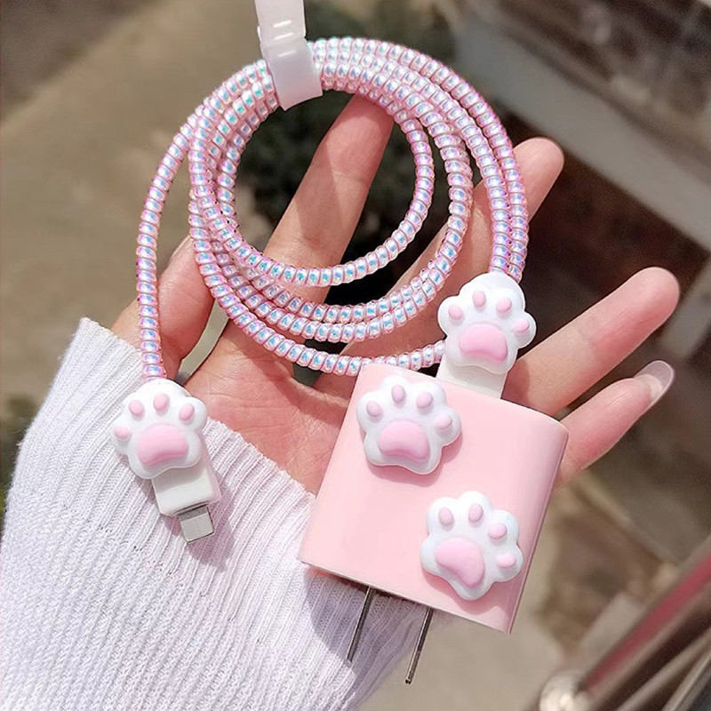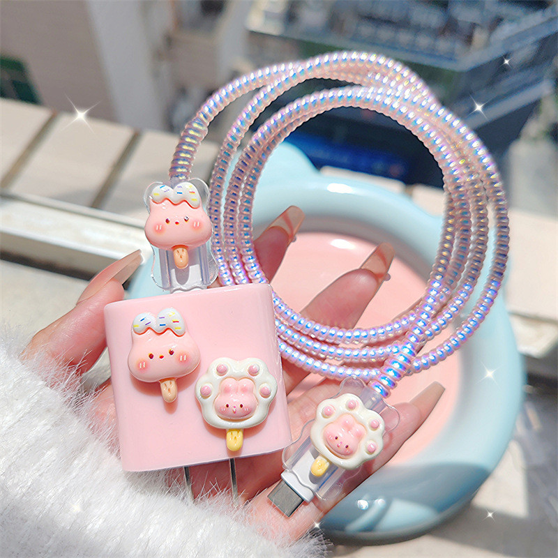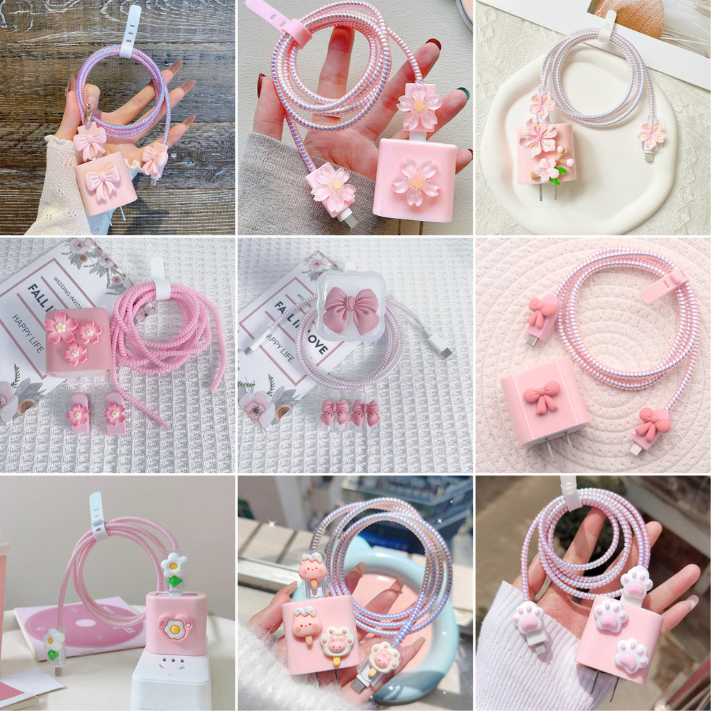 (1เซตมี5ชิ้น )พร้อมส่งจากไทย ลายการ์ตูน สําหรับ iPhone 20w 18w ฝาครอบป้องกันสายเคเบิลข้อมูลสไตล์โบว์บีด ฝาครอบป้องกันเคร
