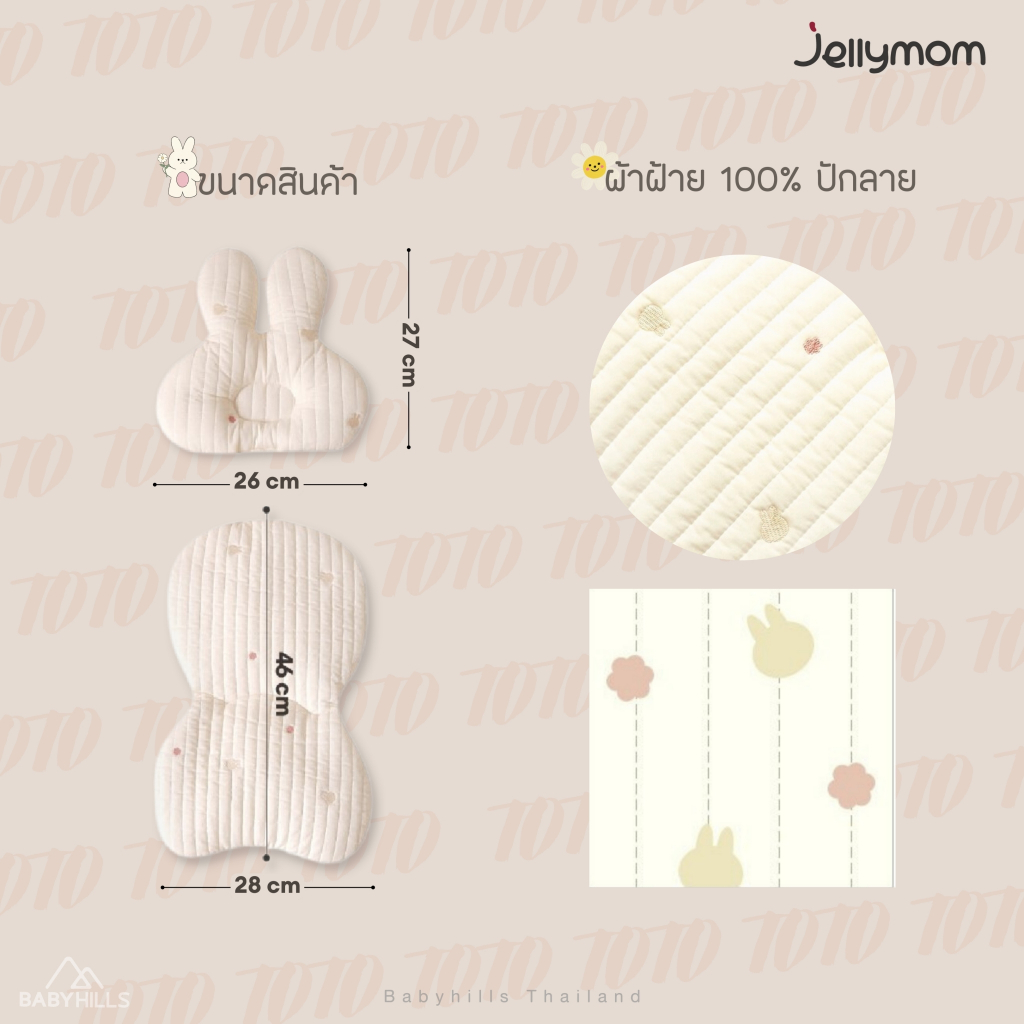 Jellymom - Rabbit Pillow Liner หมอนหนุนและเบาะรองนั่ง-นอนปักลายกระต่ายสำหรับเด็ก 2in1 แยกชิ้นได้ นุ่มสบาย ผ้าคอตตอน