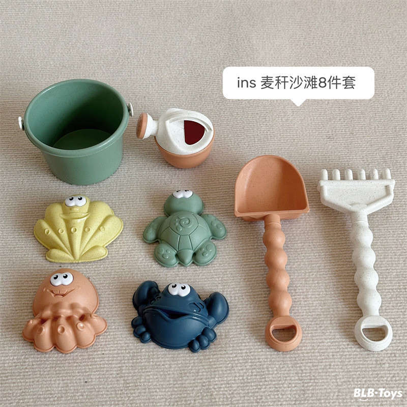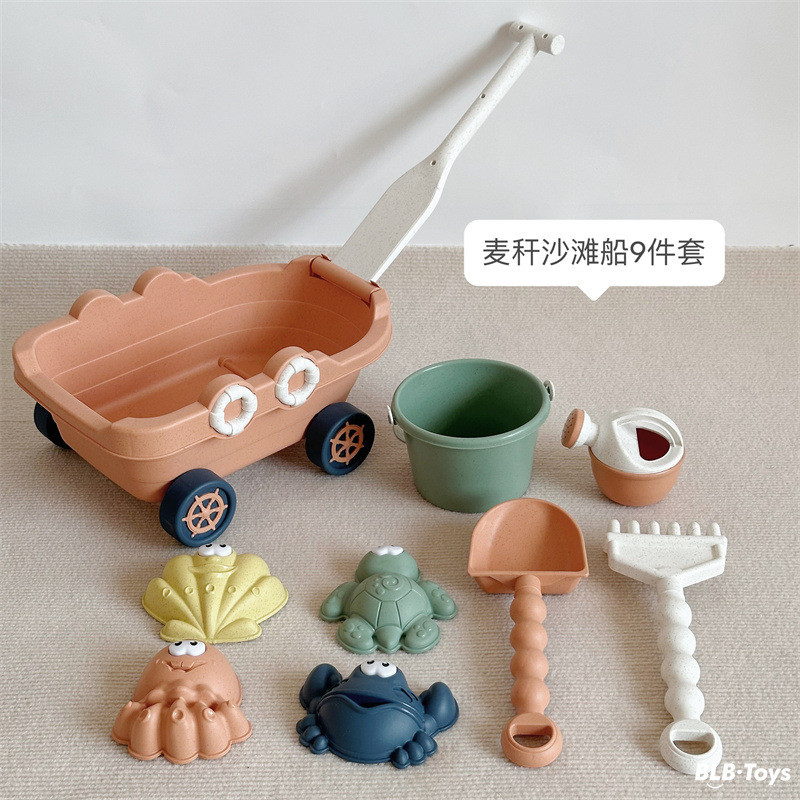 South Korea ins Children's beach toy set, wheat straw sand shoveling tools, water play, sand digging, bulldozer, thickened and durable