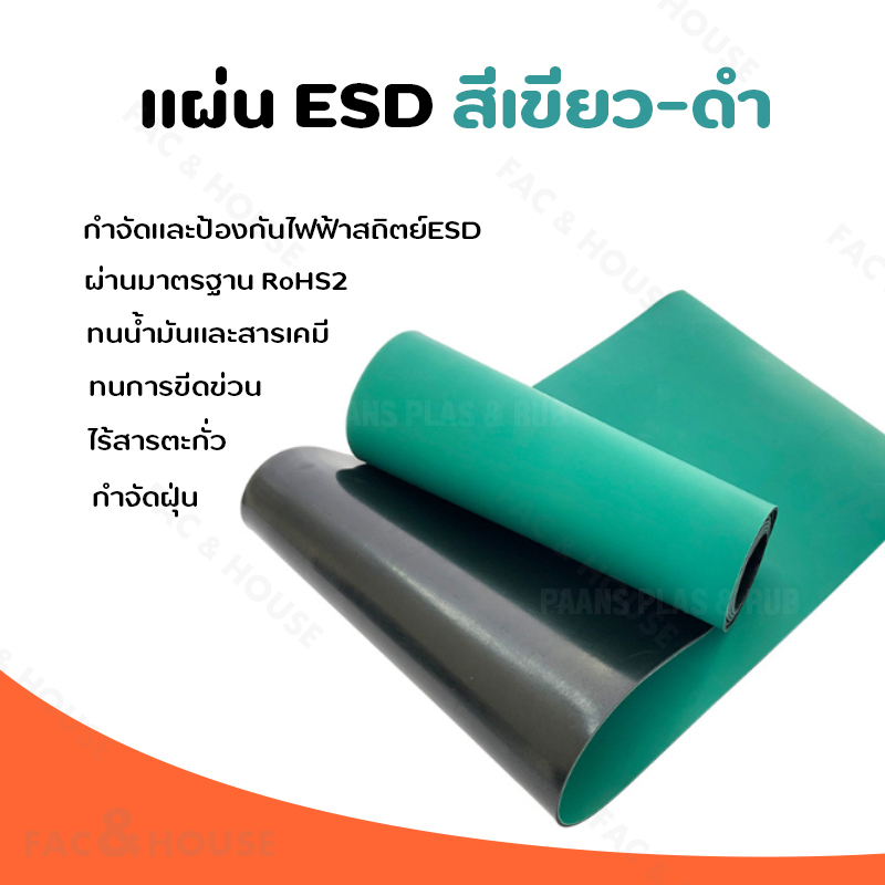 แผ่นยางกันไฟฟ้าสถิตย์ หนา2มิล ESD Green mat Antistatic แผ่นยางปูโต๊ะ table mat แผ่นสีเขียว/ดำ แบบม้วนแบ่งตัดตามขนาด