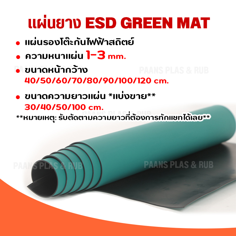 แผ่นยางกันไฟฟ้าสถิตย์ หนา1มิล ESD Green mat Antistatic แผ่นยางปูโต๊ะ table mat แผ่นสีเขียว/ดำ แบบม้วนแบ่งตัดตามขนาด