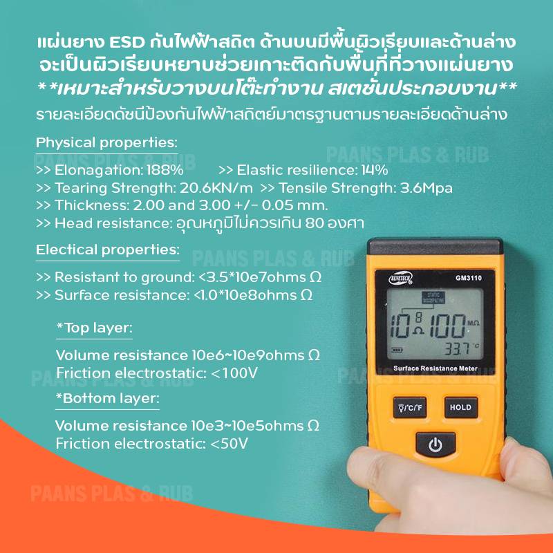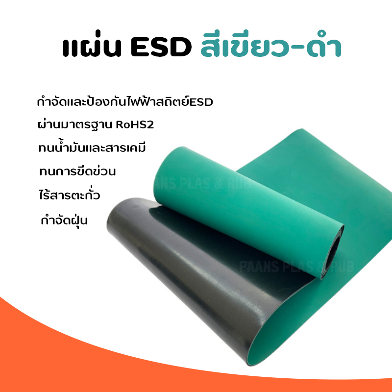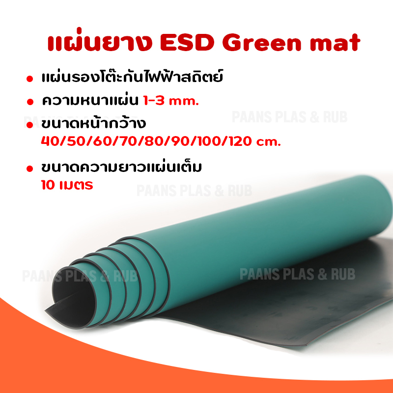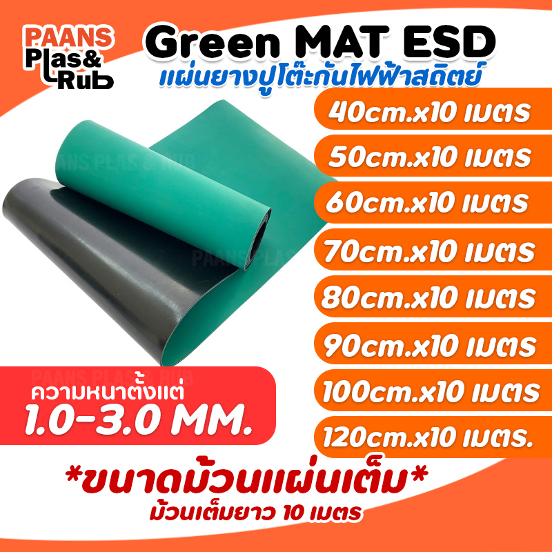 (ยกม้วน) แผ่นยางกันไฟฟ้าสถิตย์ ESD Green mat Antistatic แผ่นยางปูโต๊ะ table mat แผ่นสีเขียว/ดำ แบบม้วนยกม้วน มี 20ขนาด