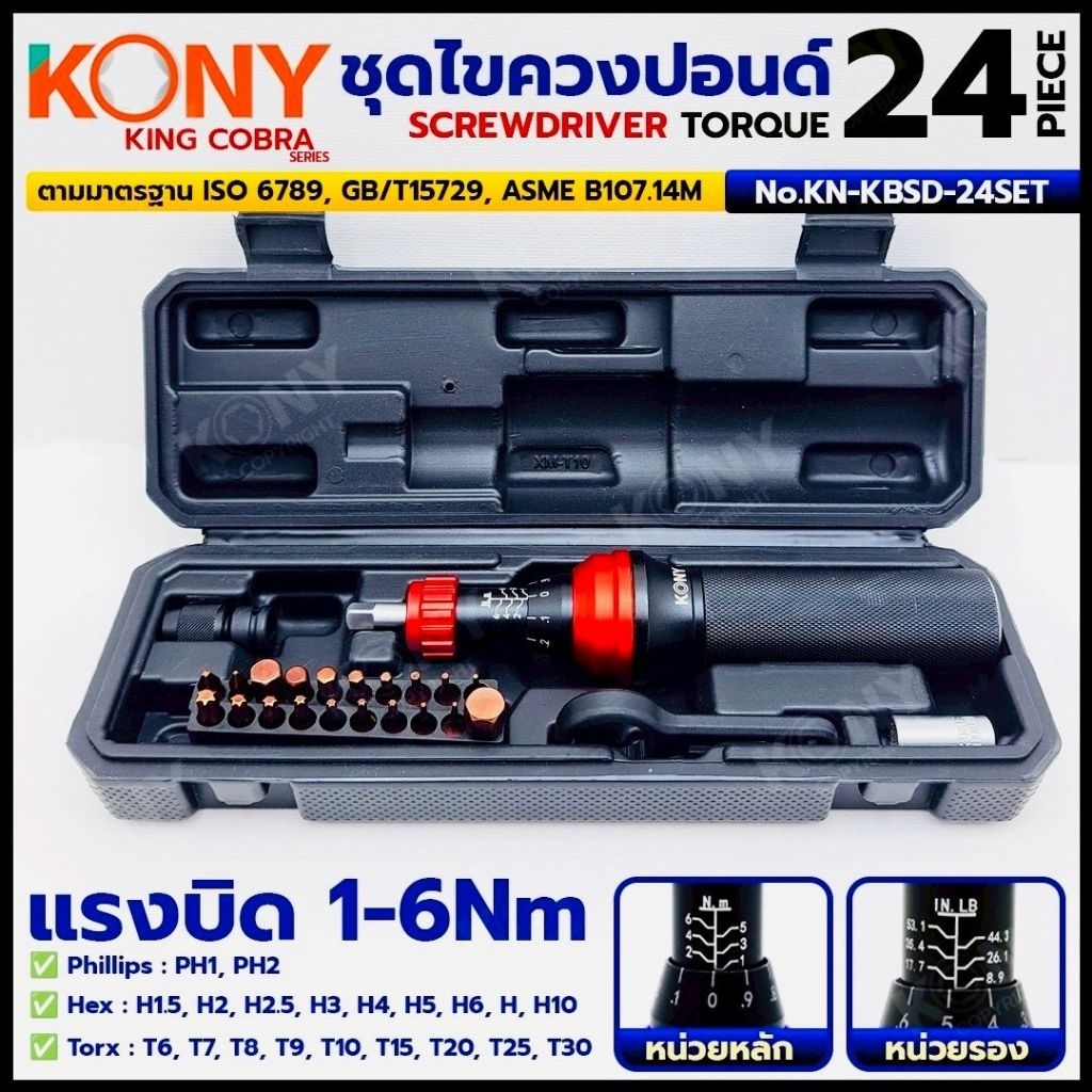KONY ชุดไขควงปอนด์ 24 ตัว/ชุด แรงบิด 1-6Nm ซีรี่ส์ KING COBRA No.KN-KBSD-24SET