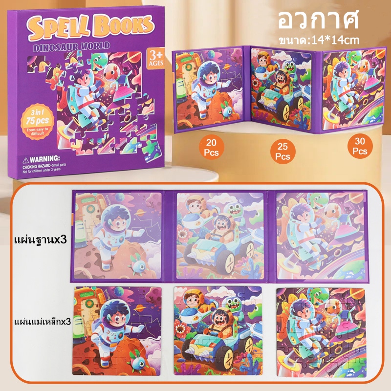 หนังสือจิ๊กซอว์แม่เหล็ก จิ๊กซอว์ ของเล่นเสริมพัฒนาการ ลายการ์ตูน จิ๊กซอว์เด็ก 1-3ขวบ