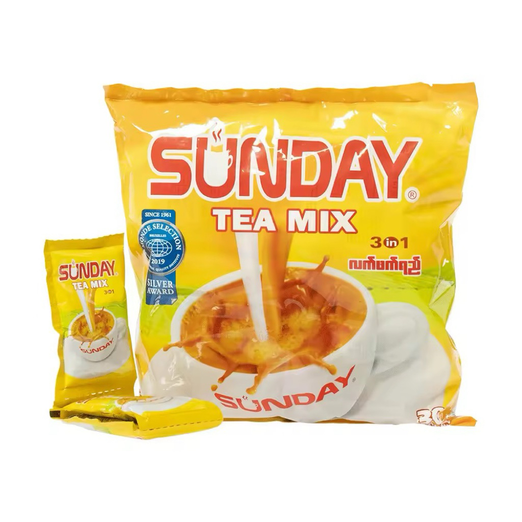 [ ชาพม่าใหม่!sunday🇲🇲tea and coffee mix 3 in 1 ]กาแฟและชาสำเร็จรูปพร้อมชง ทานง่ายได้ทุกวัน 1 ถุงมี 30 ซอง