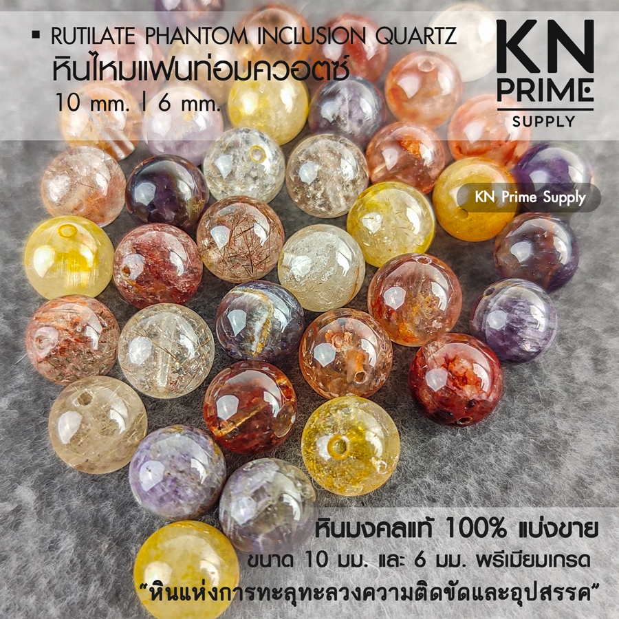 ลูกปัดหินไหมแฟนท่อมควอตซ์ Rutilated Phantom Inclusion Quartz 10และ6 มม หินแห่งการทะลุทะลวงความติดขัด