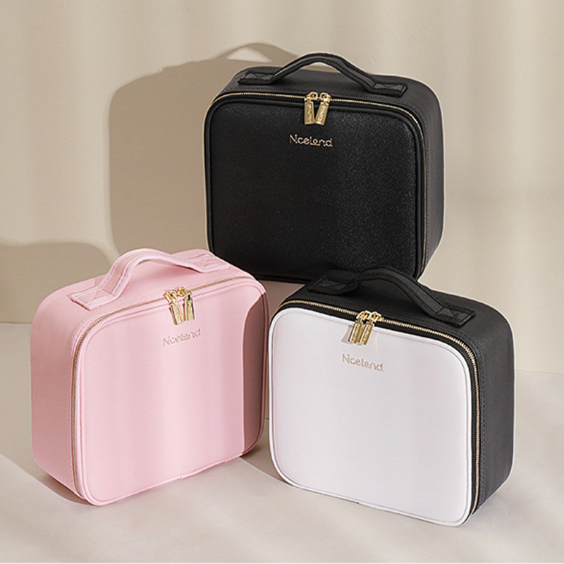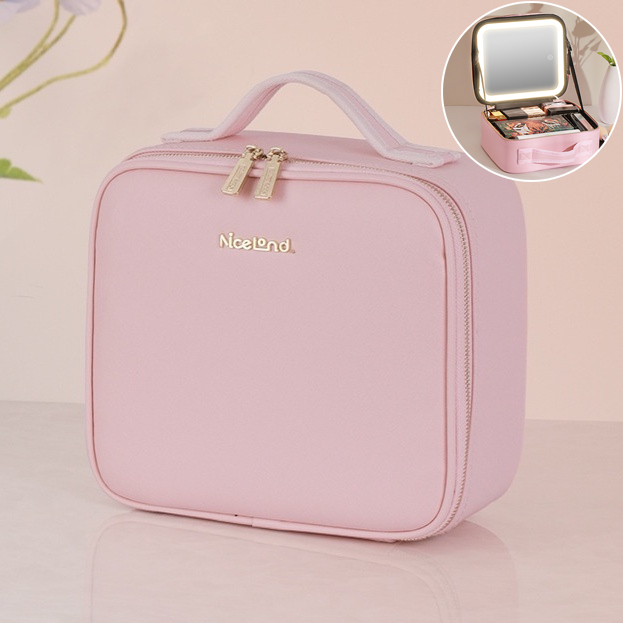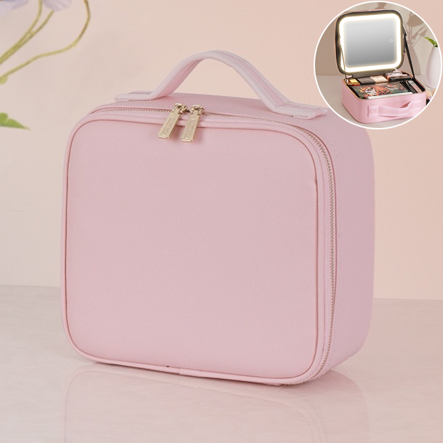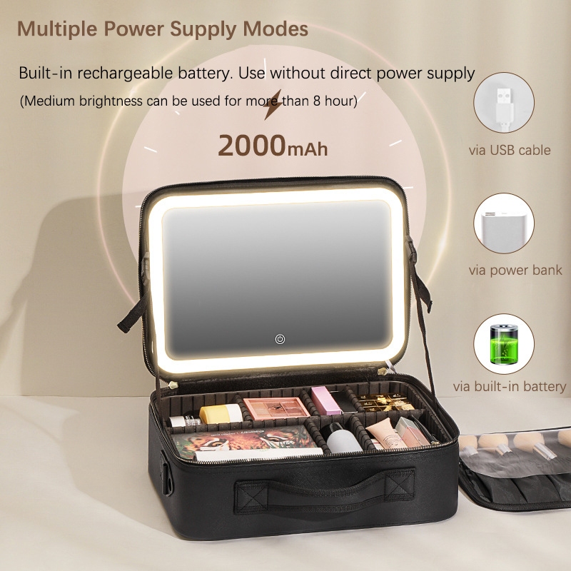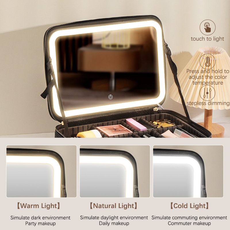 ความจุขนาดใหญ่พร้อมไฟ LED 3 สีนำกระจกเครื่องสำอางกระจกสำหรับเก็บของ