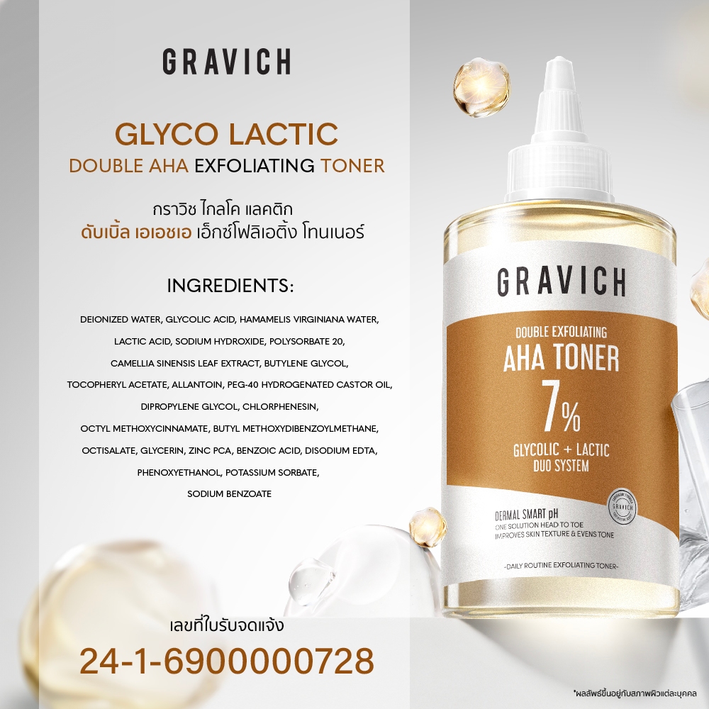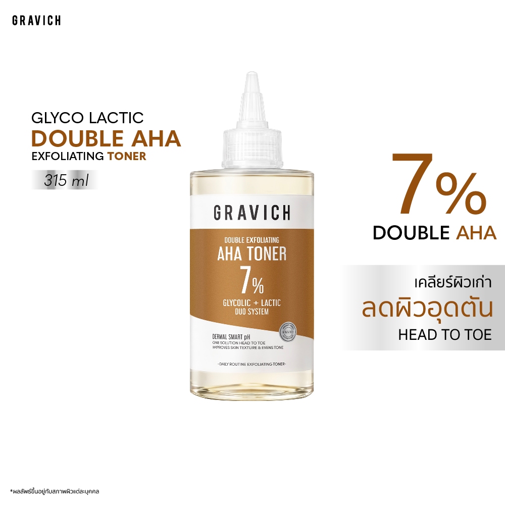 Gravich Glyco Lactic Double AHA Exfoliating Toner 315ml โทนเนอร์พิลลิ่งผิวคุมมัน รูขุมขนดูเรียบเนียน ใช้ได้ทั่วร่างกาย