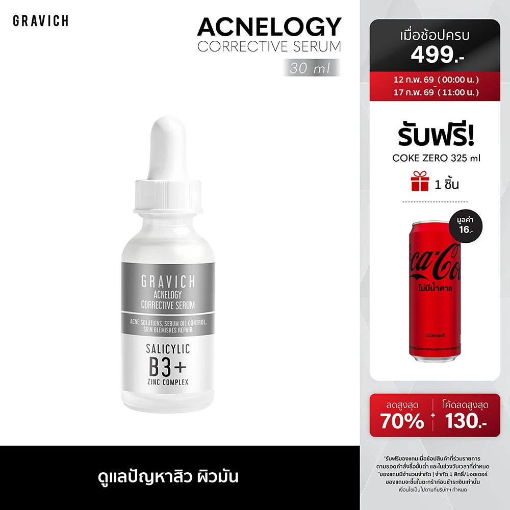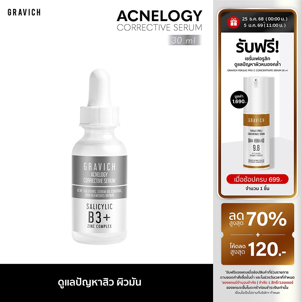 Gravich Acnelogy Corrective Serum 30 ml เซรั่มลดปัญหาสิว รอยสิว คุมมัน ลดการเกิดสิวซ้ำ