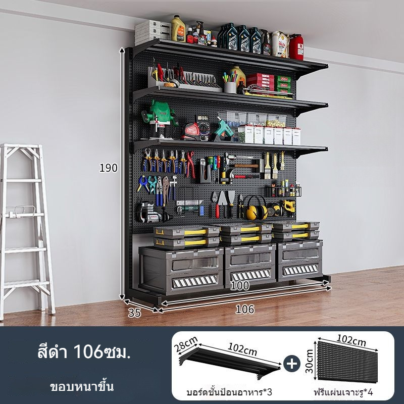 【New】ชั้นวาง ชั้นเก็บของ เครื่องมือฮาร์ดแวร์ อุปกรณ์กีฬา ไม่ต้องเจาะ โลหะ โต๊ะคอมพิวเตอร์